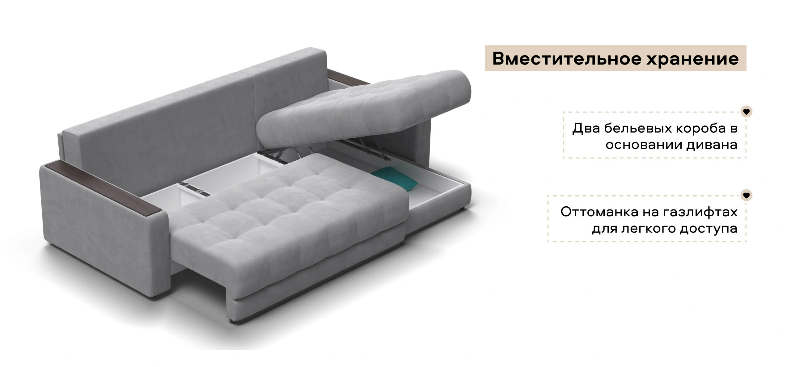 Угловой диван Босс Классик - диван с подъемной оттоманкой и механизмом Еврокнижка.