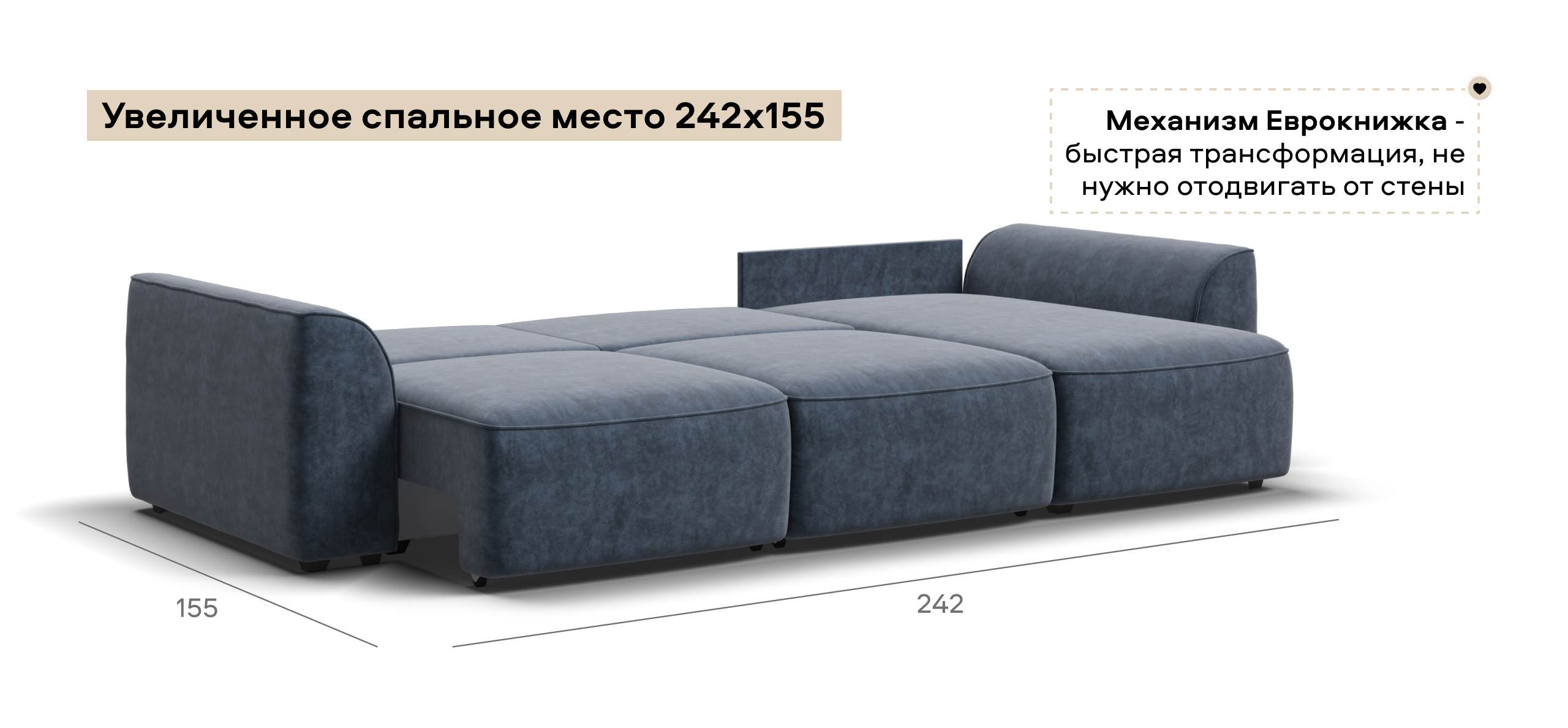 Комфортная посадка, скругленные линии, объемные подушки - диван, который наполнит ваш дом уютом и комфортом. Универсальный угол позволит Вам самостоятельно выбрать его положение при сборке, а каждое посадочное место можно выдвинуть вперед и получить П-образную форму дивана, на котором с комфортом разместится большая компания. А в разложенном виде диван превращается в комфортное спальное место.