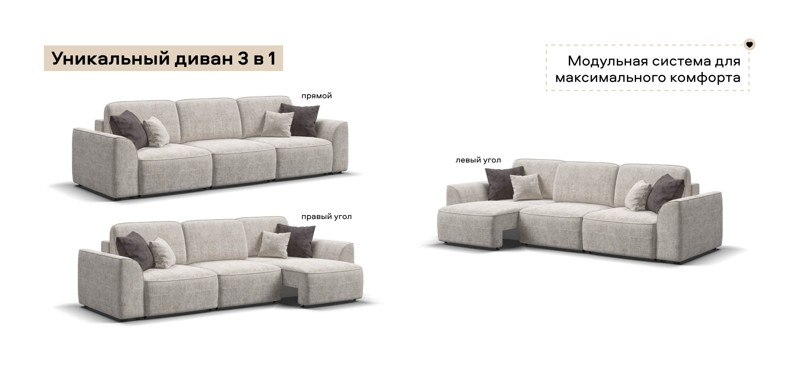 создадут максимальный комфорт во время отдыха. Модульная система позволит создать любую комбинацию от уютного кресла до огромного дивана для большой компании.