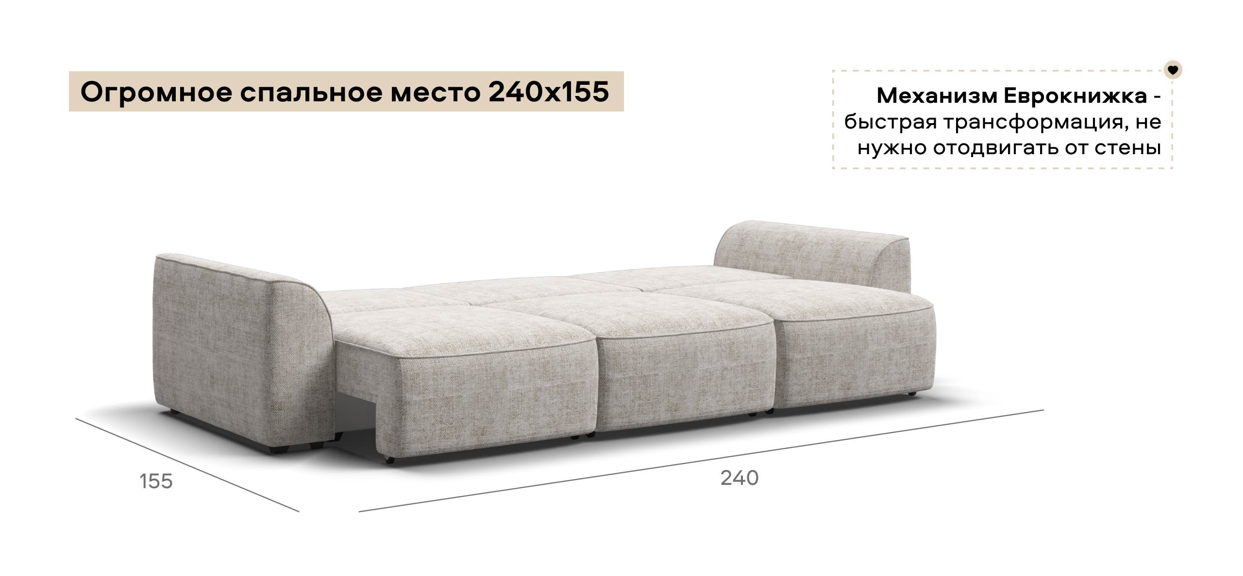 Благодаря простому и надежному механизму еврокнижка модульная система с легкостью превратится в комфортное спальное место. Важно! Диван нельзя использовать без подлокотников.
