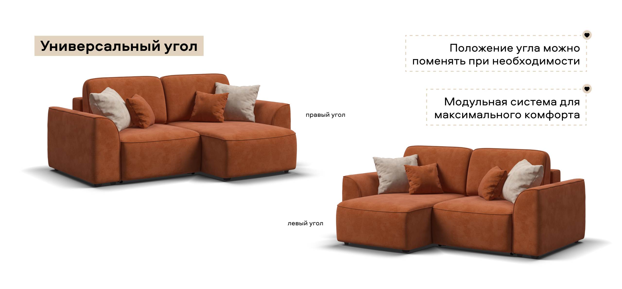 создадут максимальный комфорт во время отдыха. Модульная система позволит создать любую комбинацию от уютного кресла до огромного дивана для большой компании.