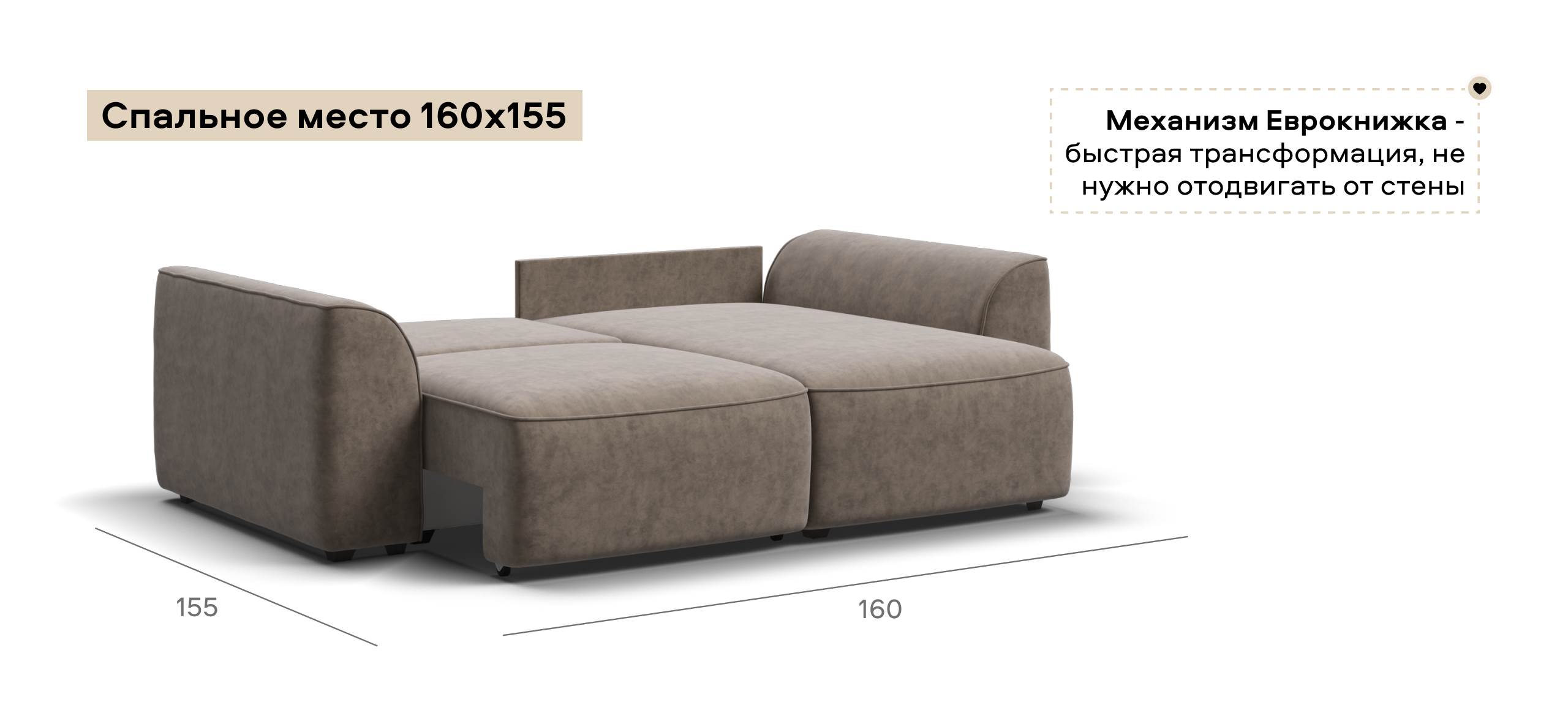 Благодаря простому и надежному механизму еврокнижка модульная система с легкостью превратится в комфортное спальное место. Важно! Диван нельзя использовать без подлокотников.