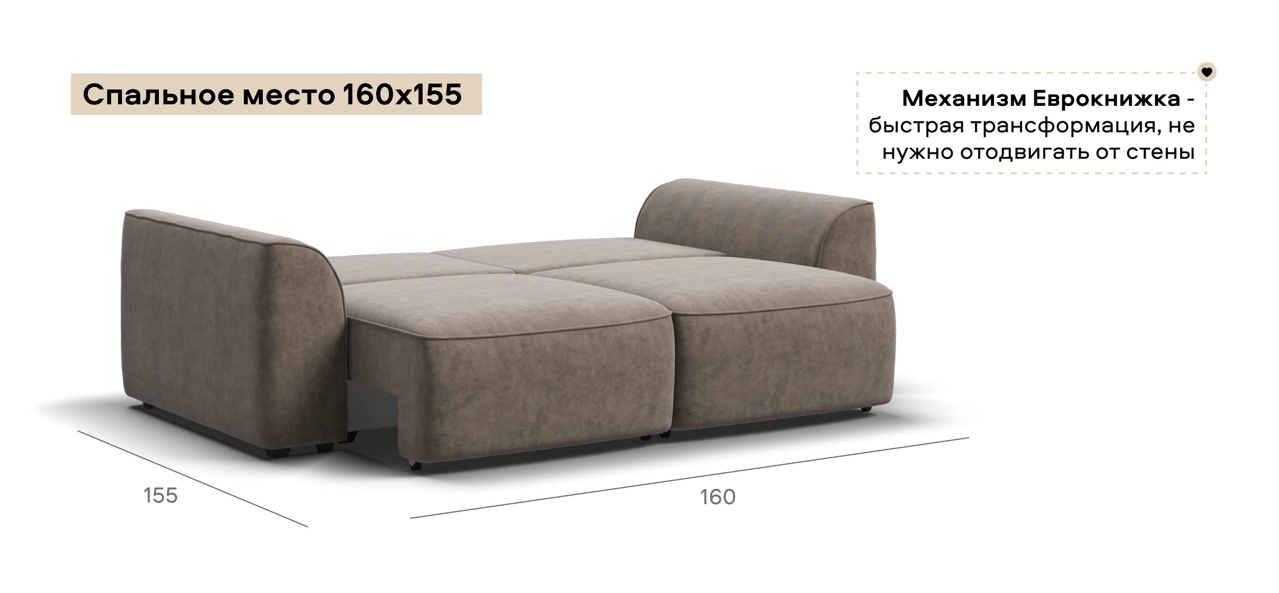 Благодаря простому и надежному механизму еврокнижка модульная система с легкостью превратится в комфортное спальное место. Важно! Диван нельзя использовать без подлокотников.