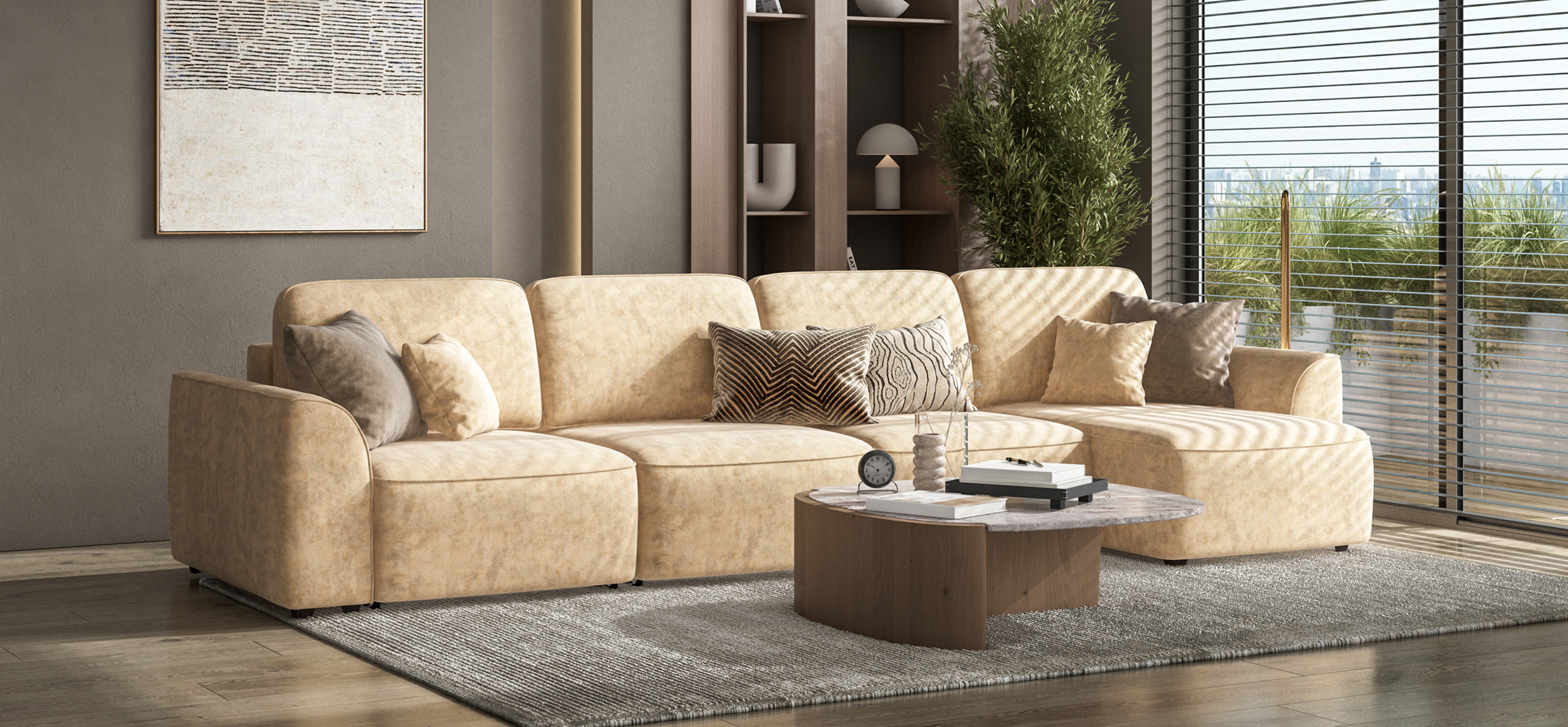 Угловой диван Кинг Модуль Макс велюр Роял шампань