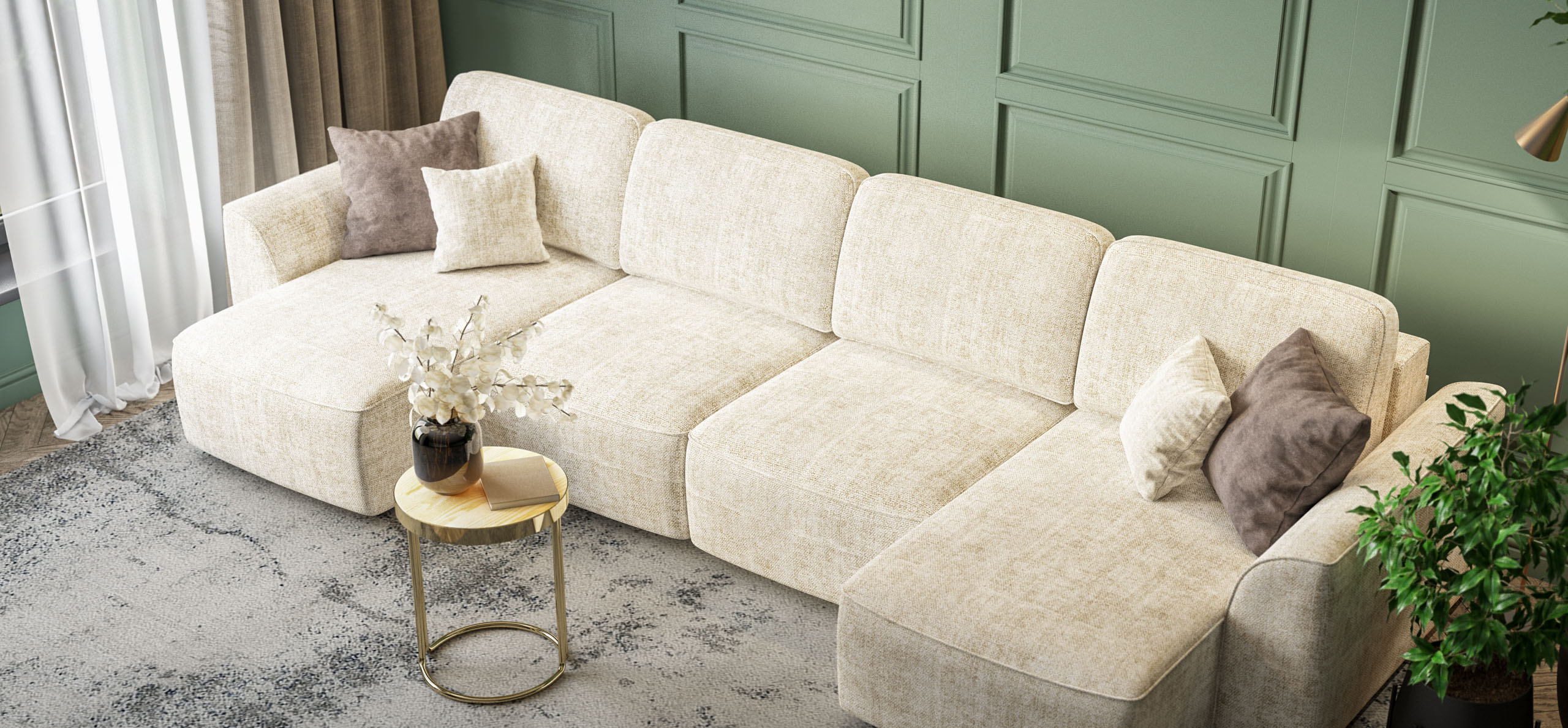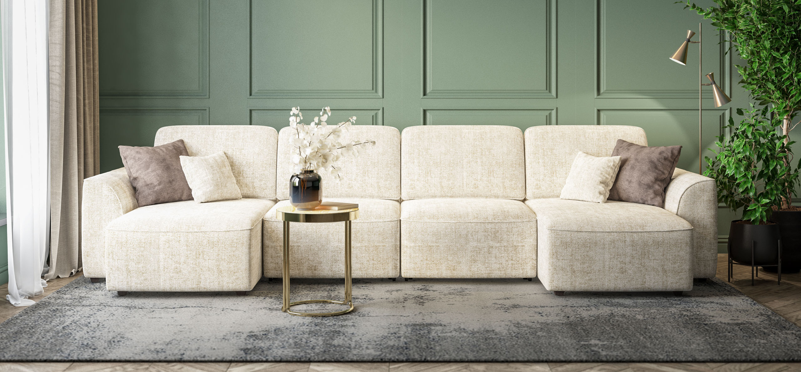П-образный диван Кинг Модуль Шенилл Смарт кварц