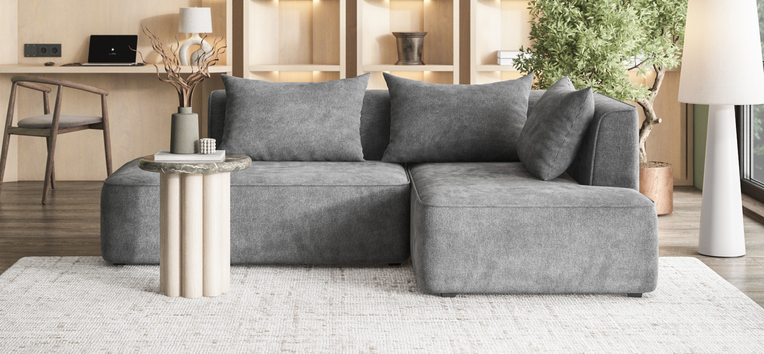 Универсальный дизайн 3-в-1 позволяет быстро менять его форму — левый угол, правый угол и прямой — всё для Вашего комфорта.