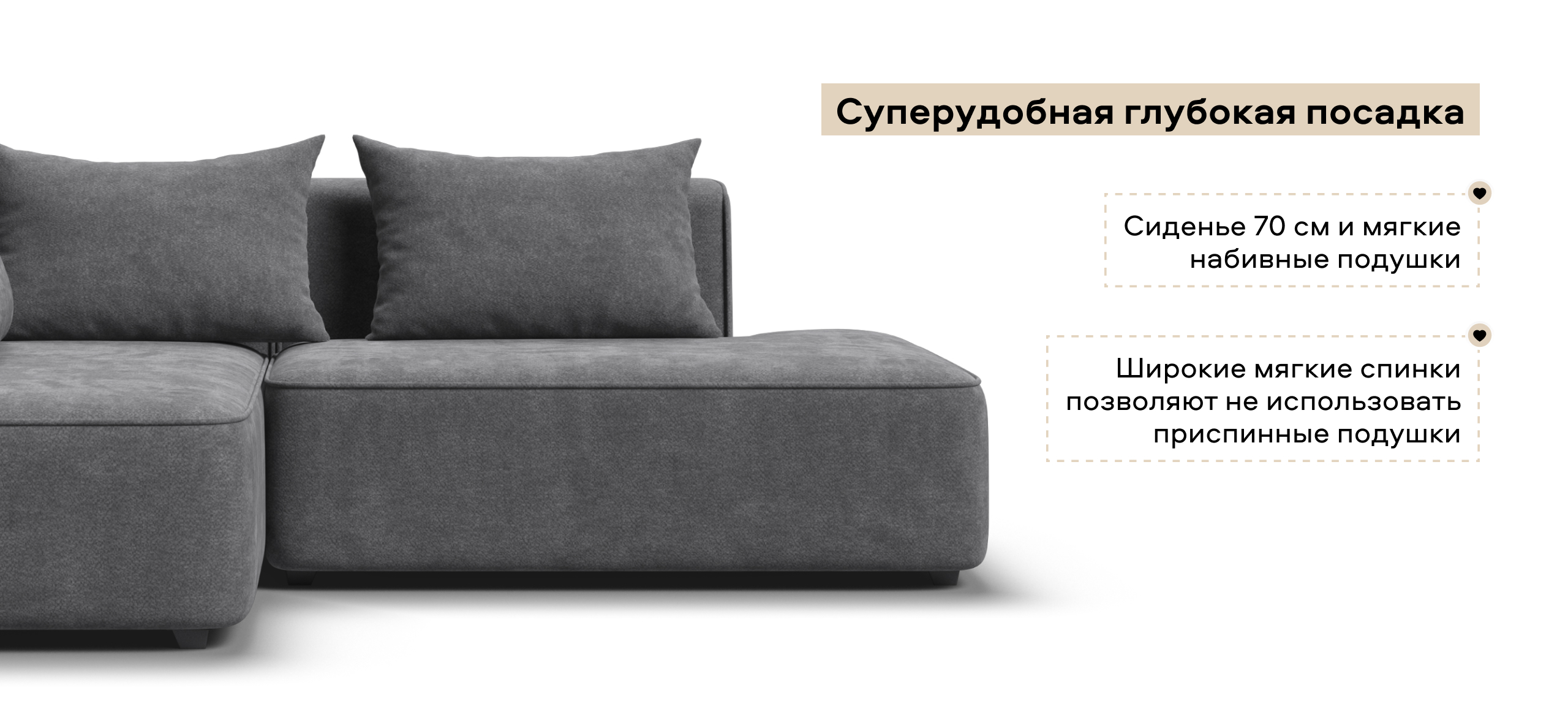 Глубокое сиденье и независимые пружины в основании словно созданы для полного расслабления, а мягкие спинки обеспечивают комфорт без лишних подушек.