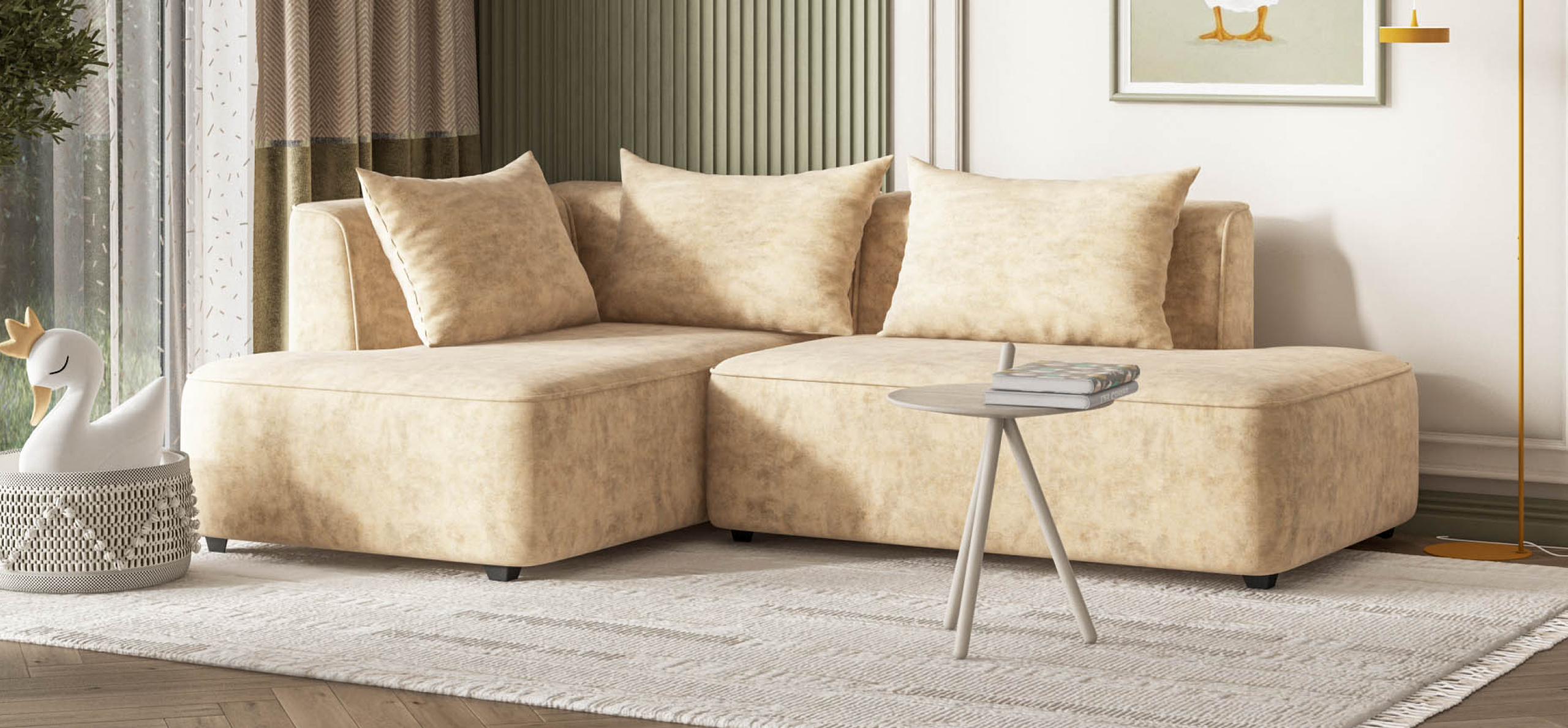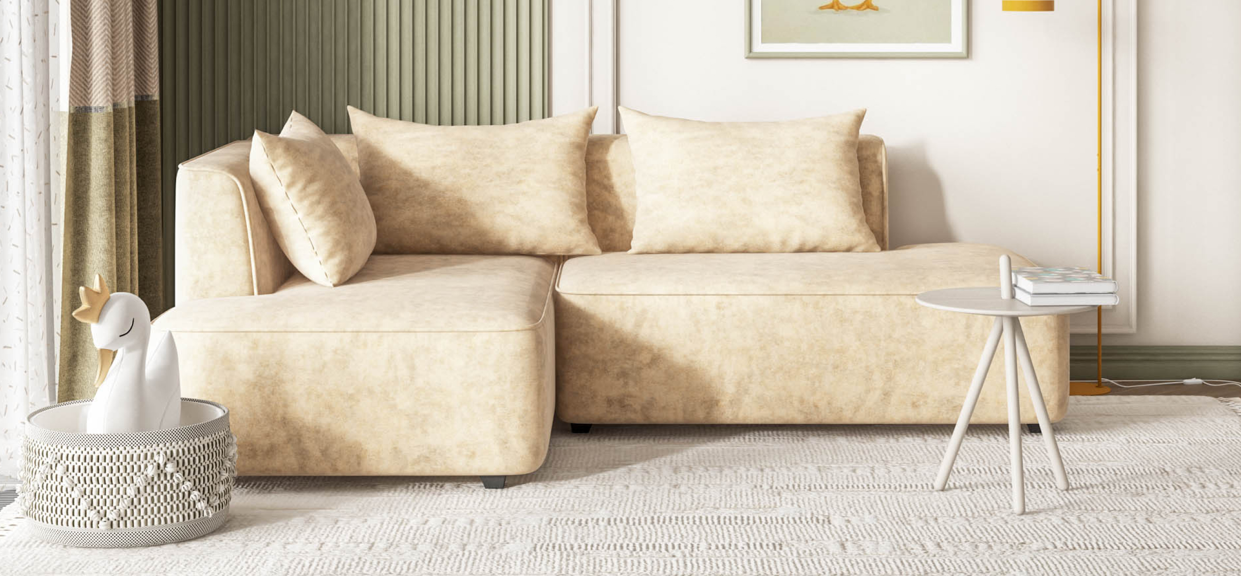 Угловой диван левый Кинг Твин велюр Роял шампань