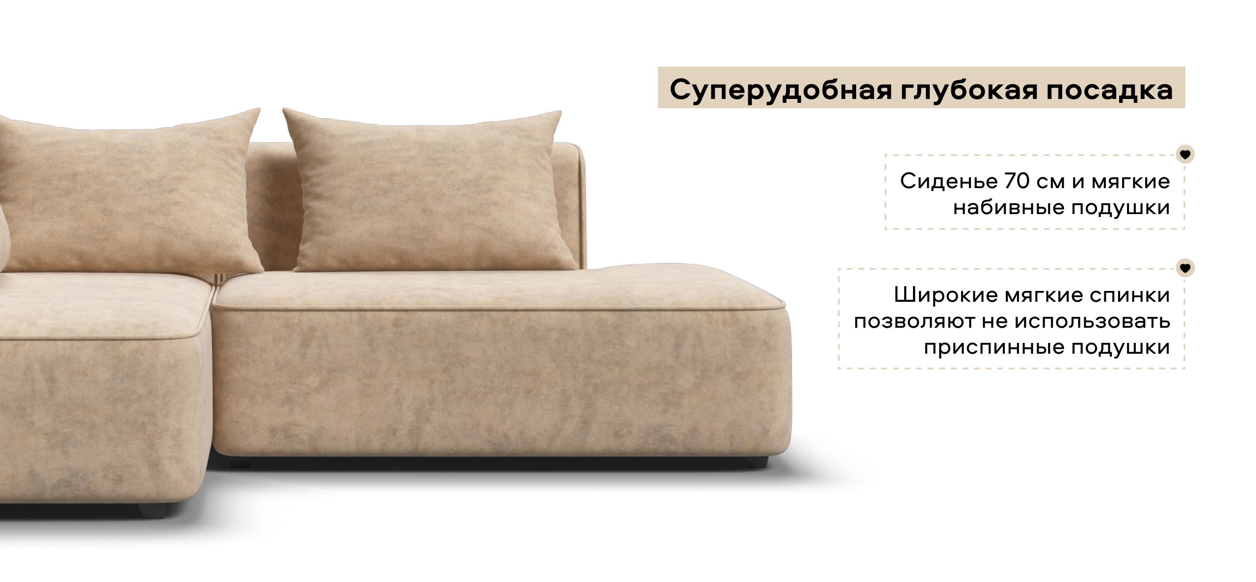 Глубокое сиденье и независимые пружины в основании словно созданы для полного расслабления, а мягкие спинки обеспечивают комфорт без лишних подушек.