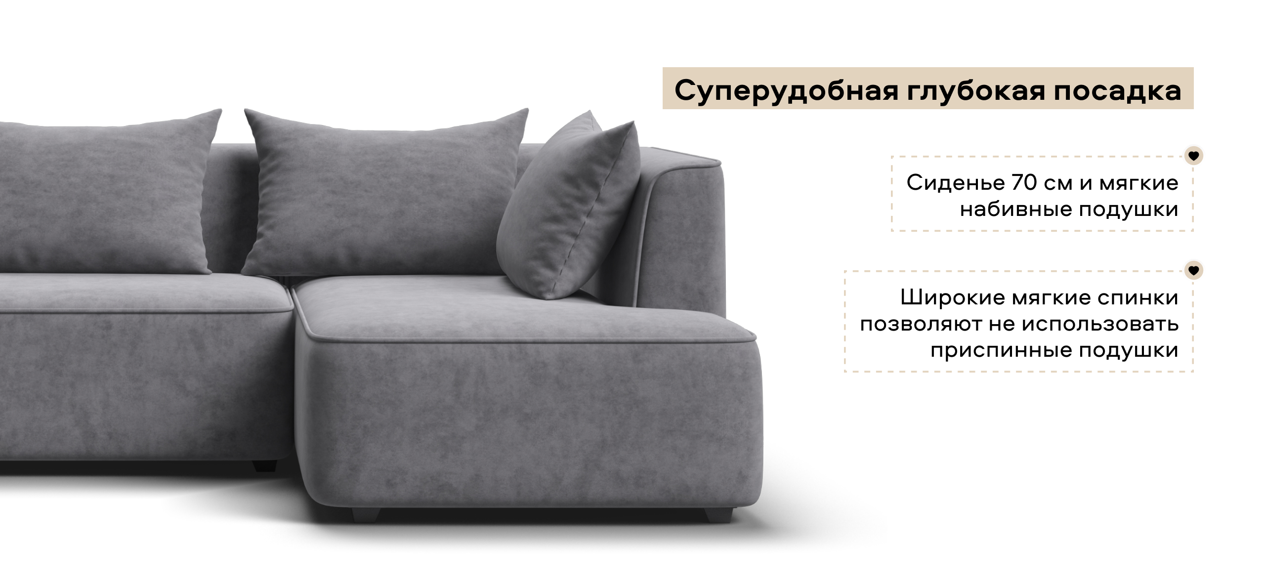 Глубокое сиденье и независимые пружины в основании словно созданы для полного расслабления, а мягкие спинки обеспечивают комфорт без лишних подушек.
