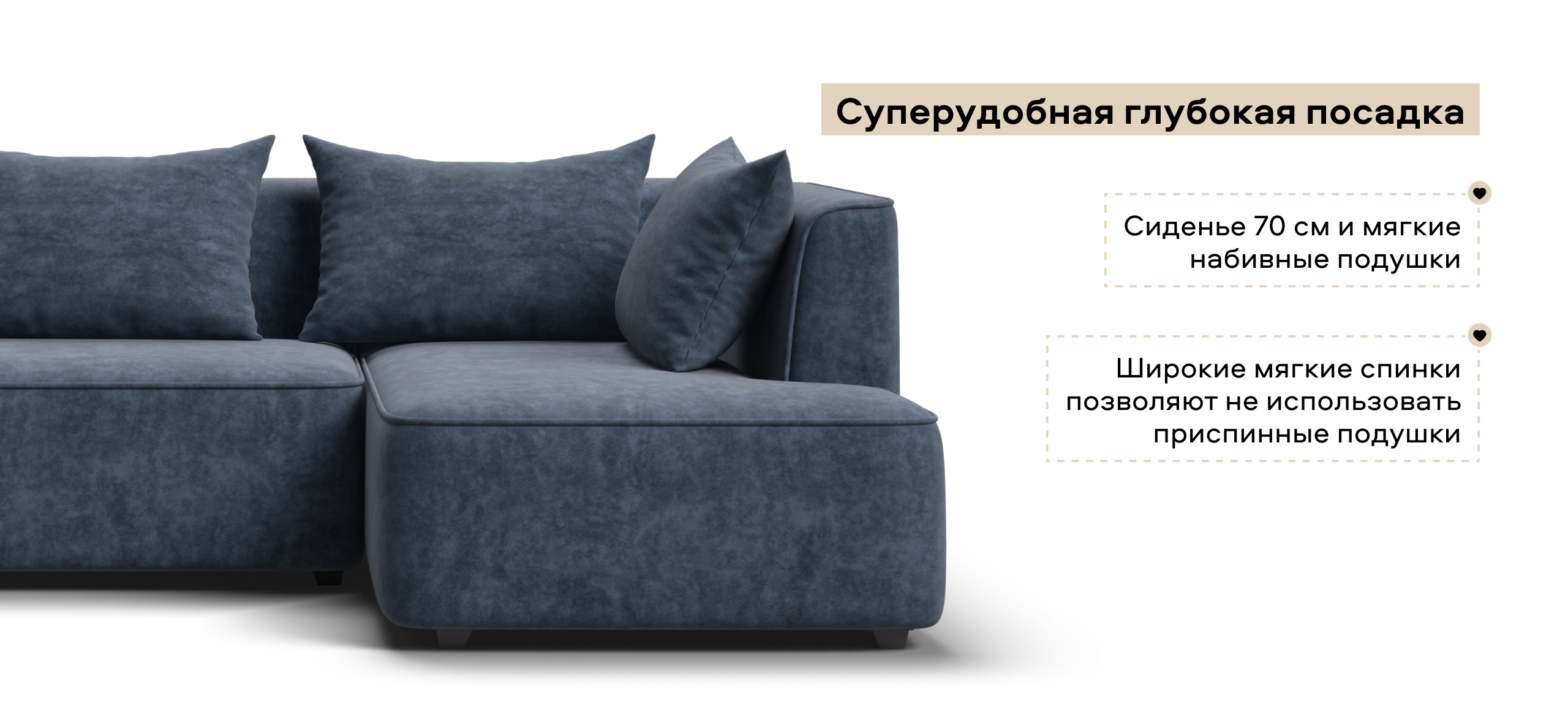 Глубокое сиденье и независимые пружины в основании словно созданы для полного расслабления, а мягкие спинки обеспечивают комфорт без лишних подушек.