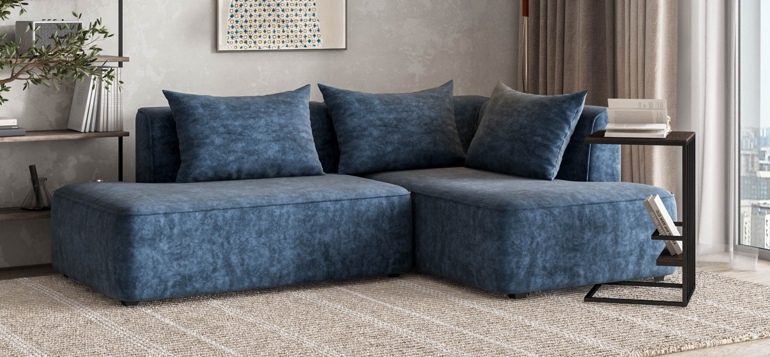 Угловой диван правый Кинг Твин велюр Роял синий