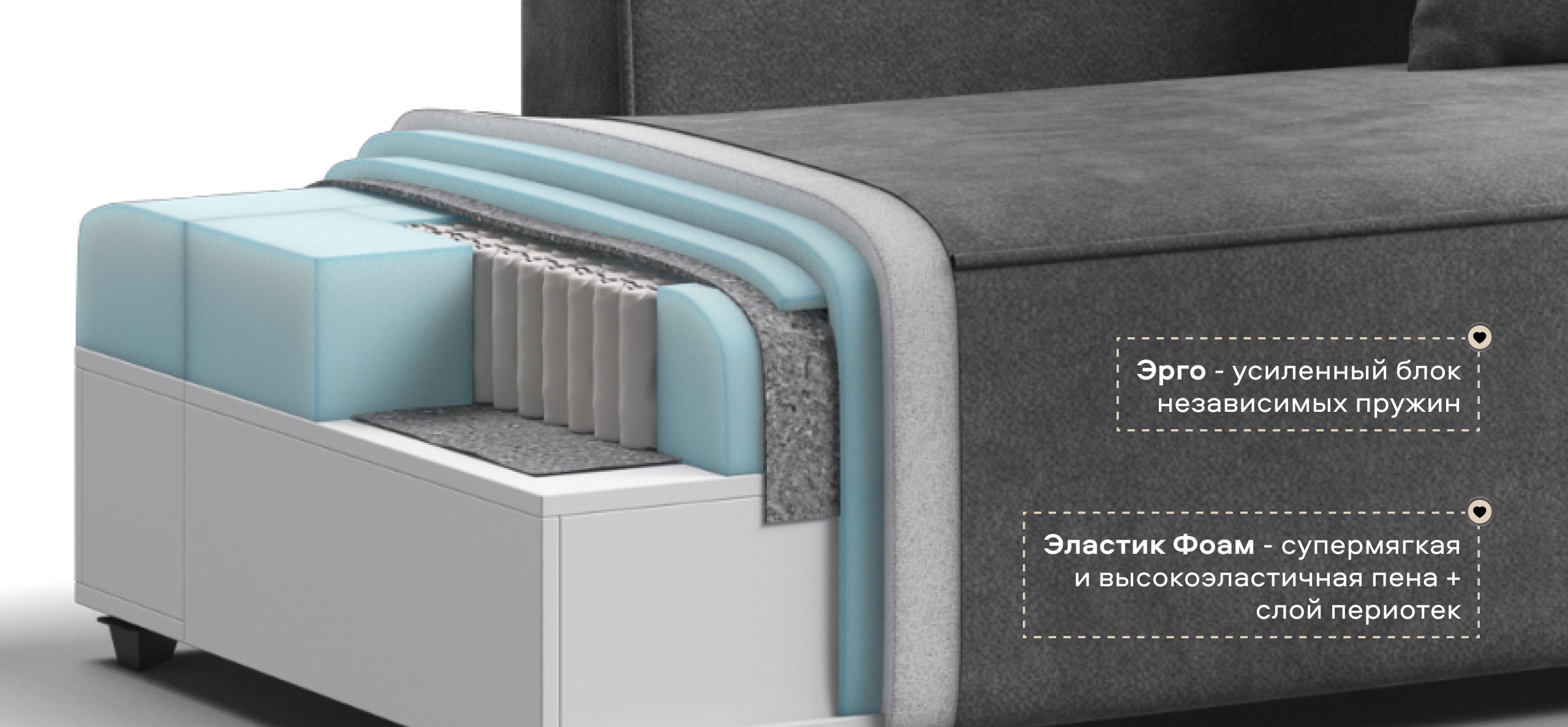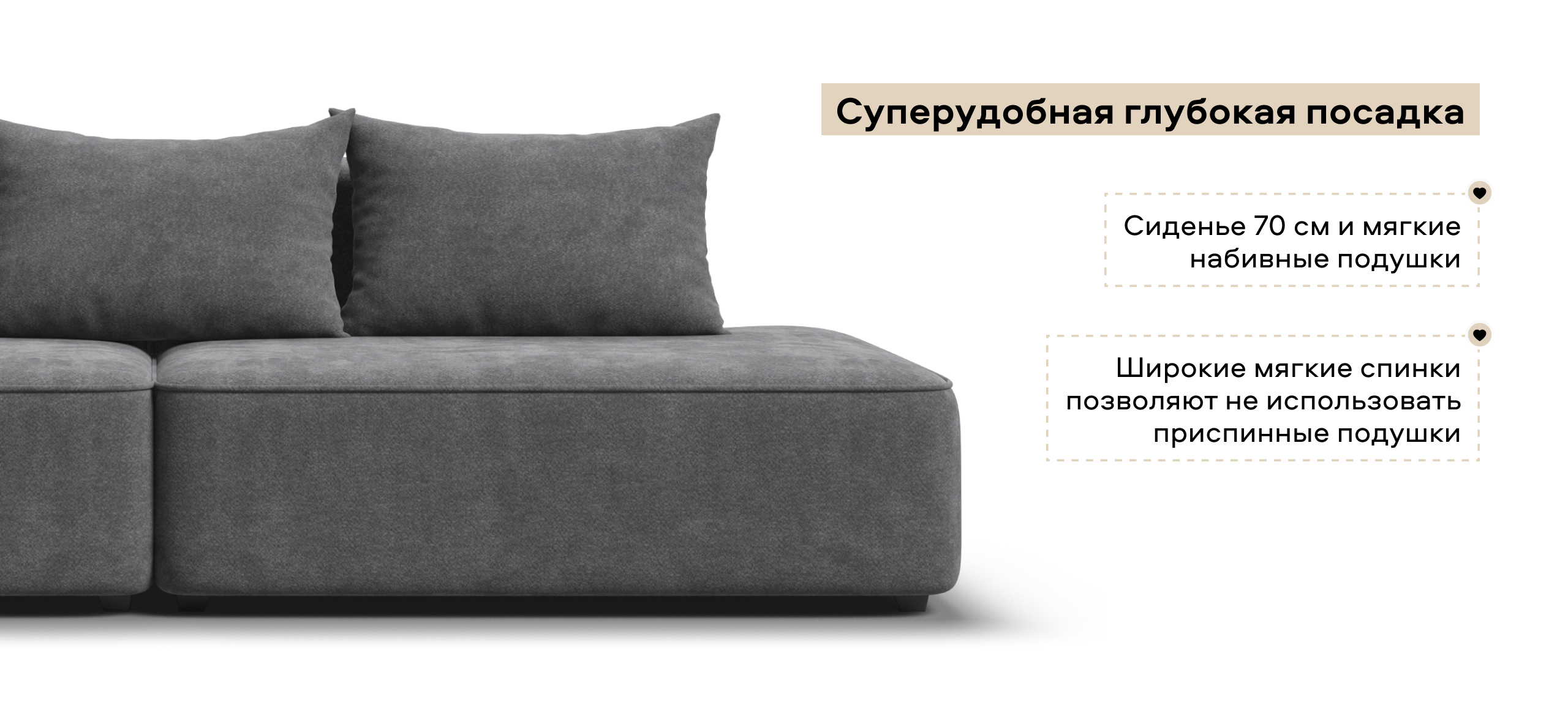 Глубокое сиденье и независимые пружины в основании словно созданы для полного расслабления, а мягкие спинки обеспечивают комфорт без лишних подушек.