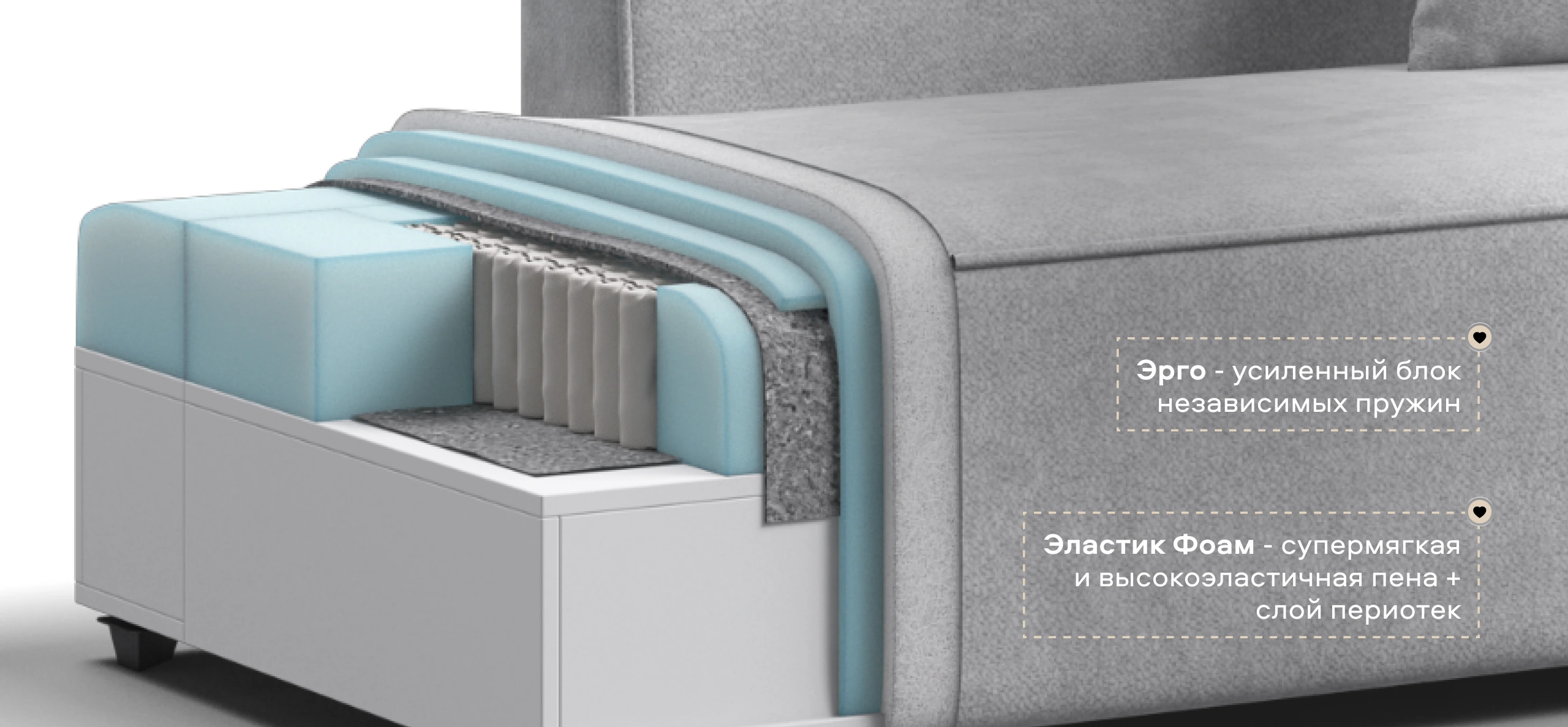 Благодаря инновационной системе креплений и быстросъёмным элементам Вы с лёгкостью можете поменять конфигурацию и адаптировать диван под новое пространство.