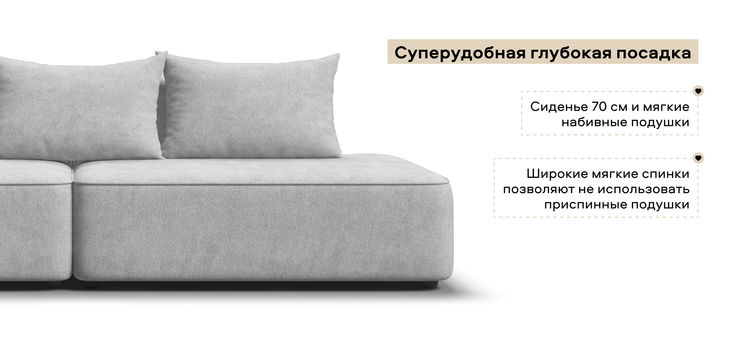 Глубокое сиденье и независимые пружины в основании словно созданы для полного расслабления, а мягкие спинки обеспечивают комфорт без лишних подушек.