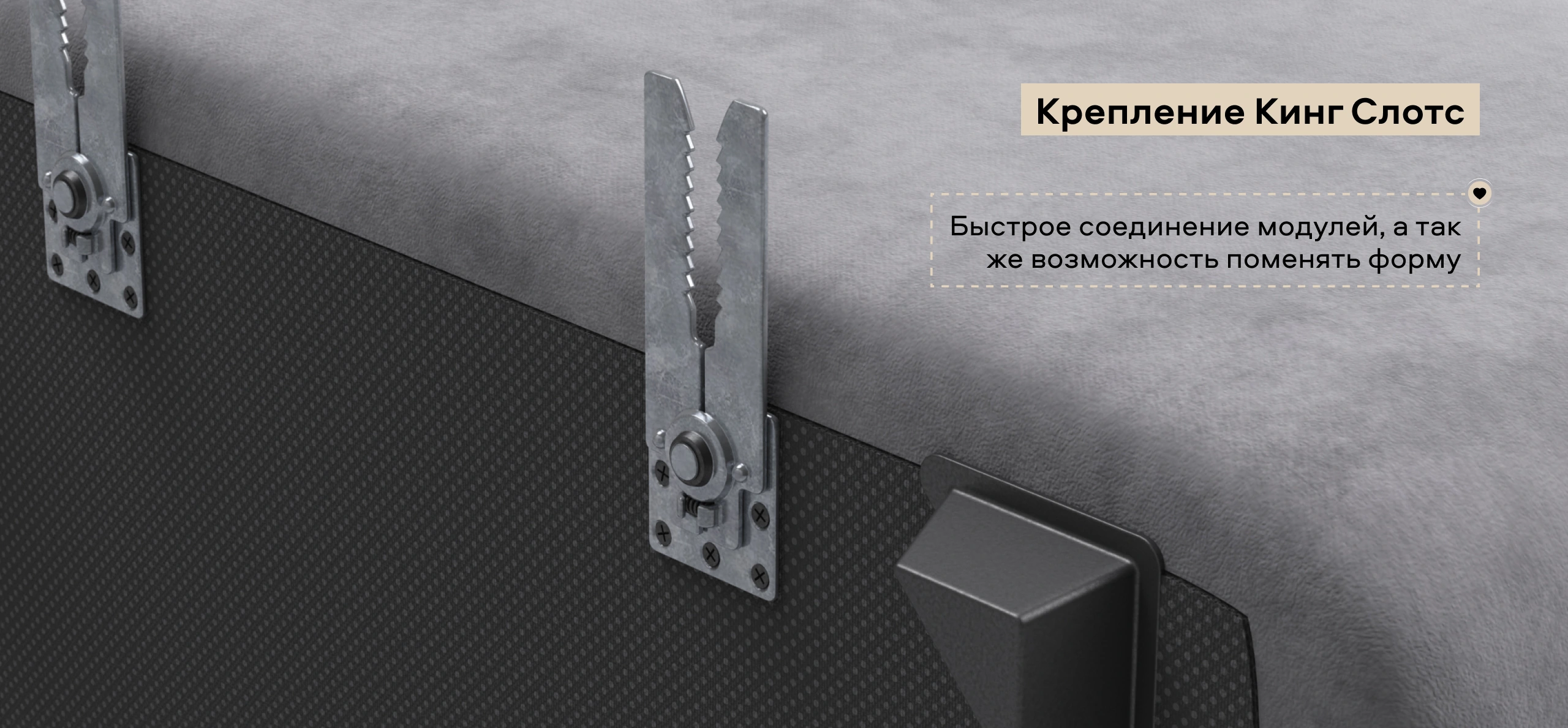 Благодаря инновационной системе креплений и быстросъёмным элементам Вы с лёгкостью можете поменять конфигурацию и адаптировать диван под новое пространство.