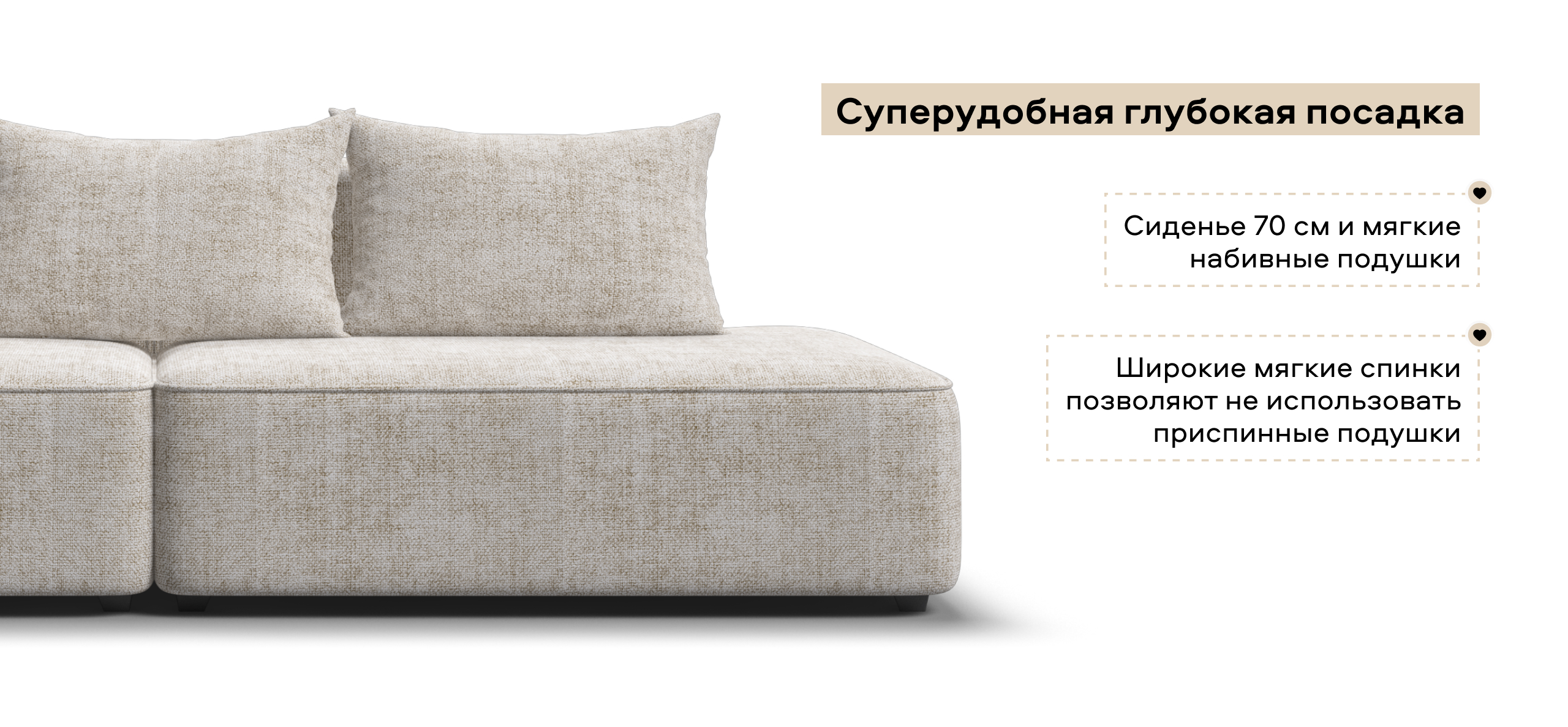 Глубокое сиденье и независимые пружины в основании словно созданы для полного расслабления, а мягкие спинки обеспечивают комфорт без лишних подушек.