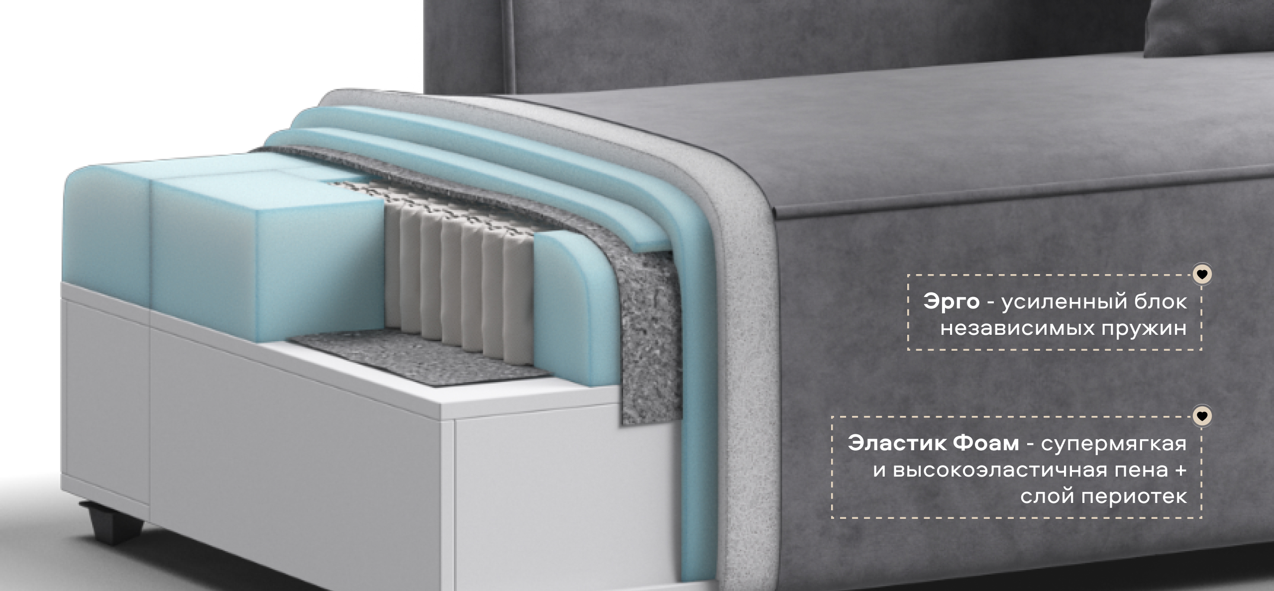 Глубокое сиденье и независимые пружины в основании словно созданы для полного расслабления, а мягкие спинки обеспечивают комфорт без лишних подушек.