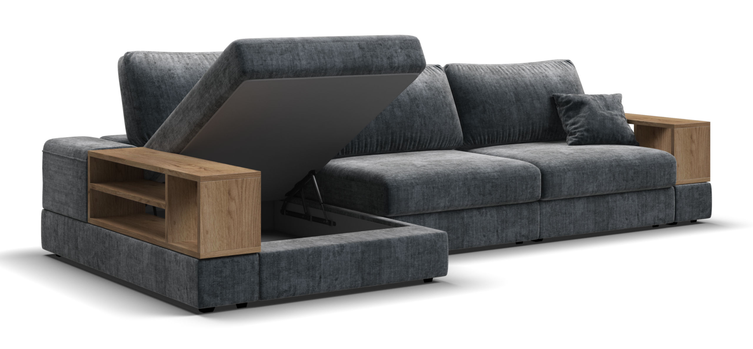 Металлический каркас обеспечивает долговечность и надежность. Диван выполнен с учетом последних требований в области экологии – не содержит ЛДСП, бельевые ящики из биоразлагаемого текстиля. Съёмные аксессуары помогут настроить необходимый вам функционал.
