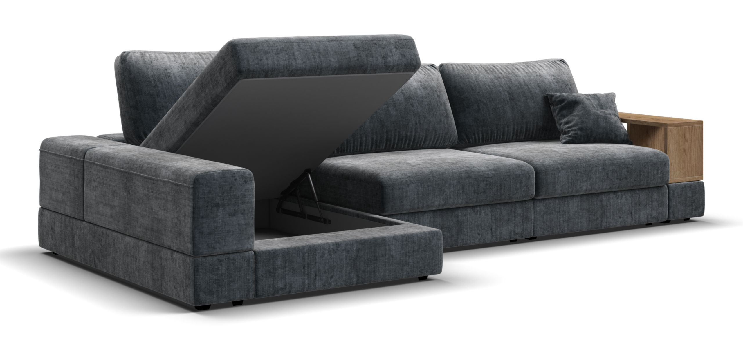 Металлический каркас обеспечивает долговечность и надежность. Диван выполнен с учетом последних требований в области экологии – не содержит ЛДСП, бельевые ящики из биоразлагаемого текстиля. Съёмные аксессуары помогут настроить необходимый вам функционал.