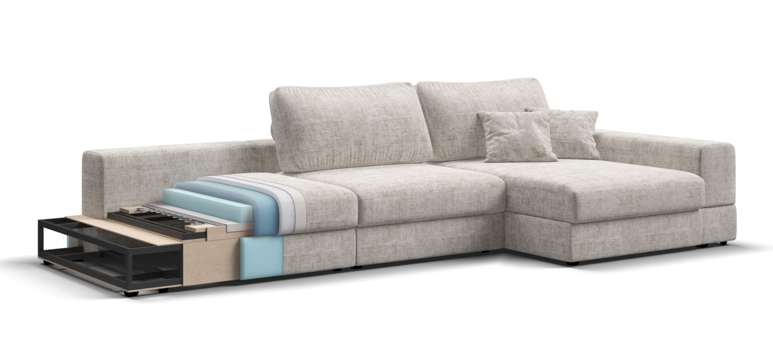 Металлический каркас обеспечивает долговечность и надежность. Диван выполнен с учетом последних требований в области экологии – не содержит ЛДСП, бельевые ящики из биоразлагаемого текстиля. Съёмные аксессуары помогут настроить необходимый вам функционал.