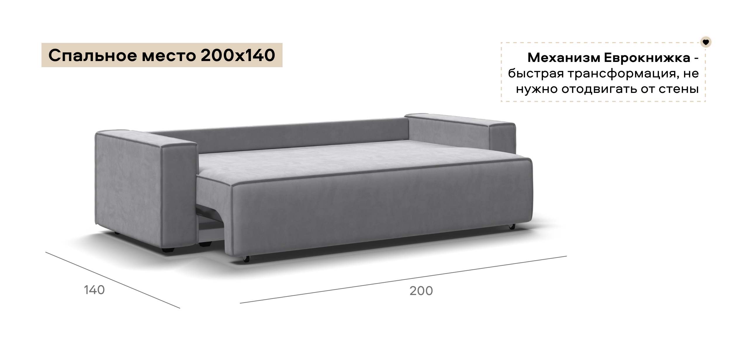 Днем вы с комфортом сможете провести время за просмотром любимого фильма, а ночью трансформировать диван в идеально ровное спальное место без стыков, благодаря анатомическому матрасу и надежному механизму еврокнижка.