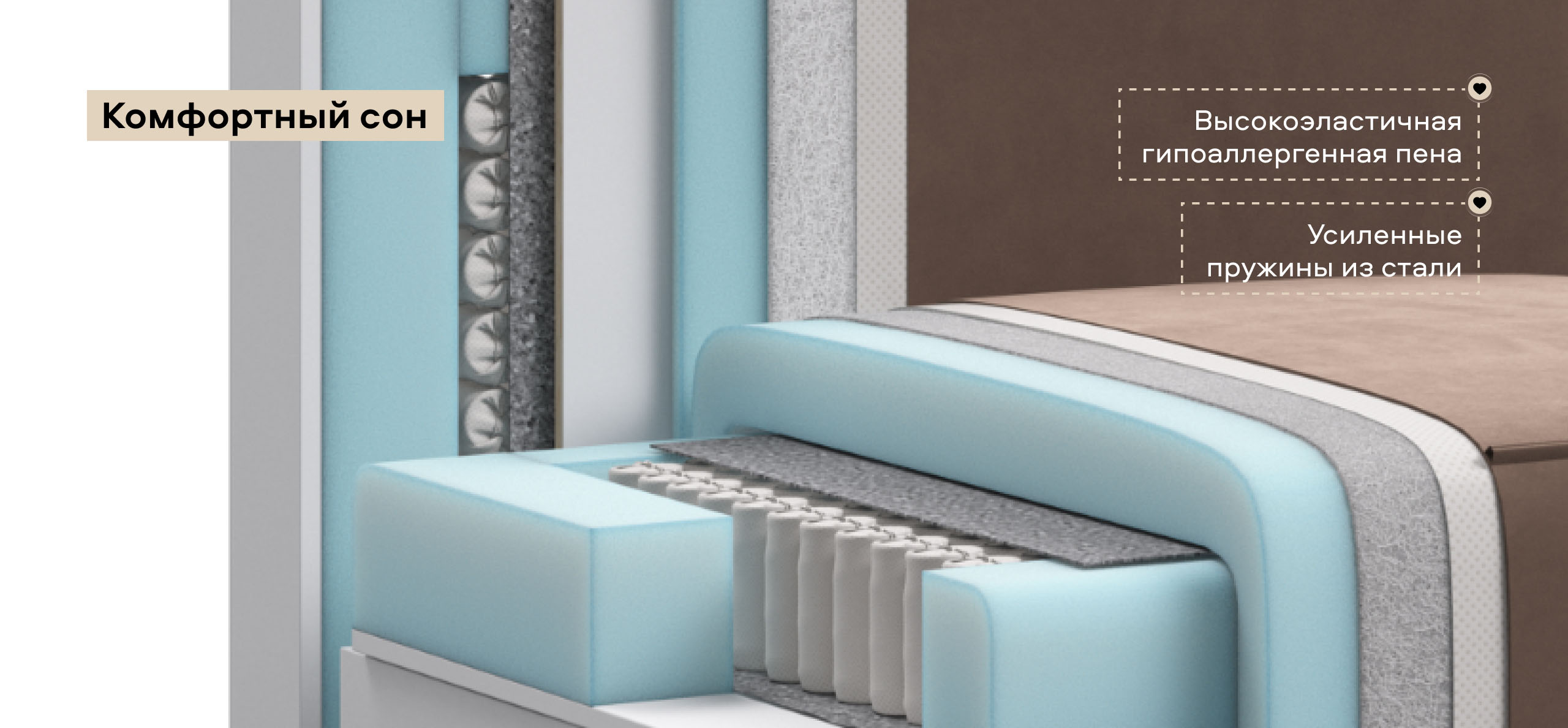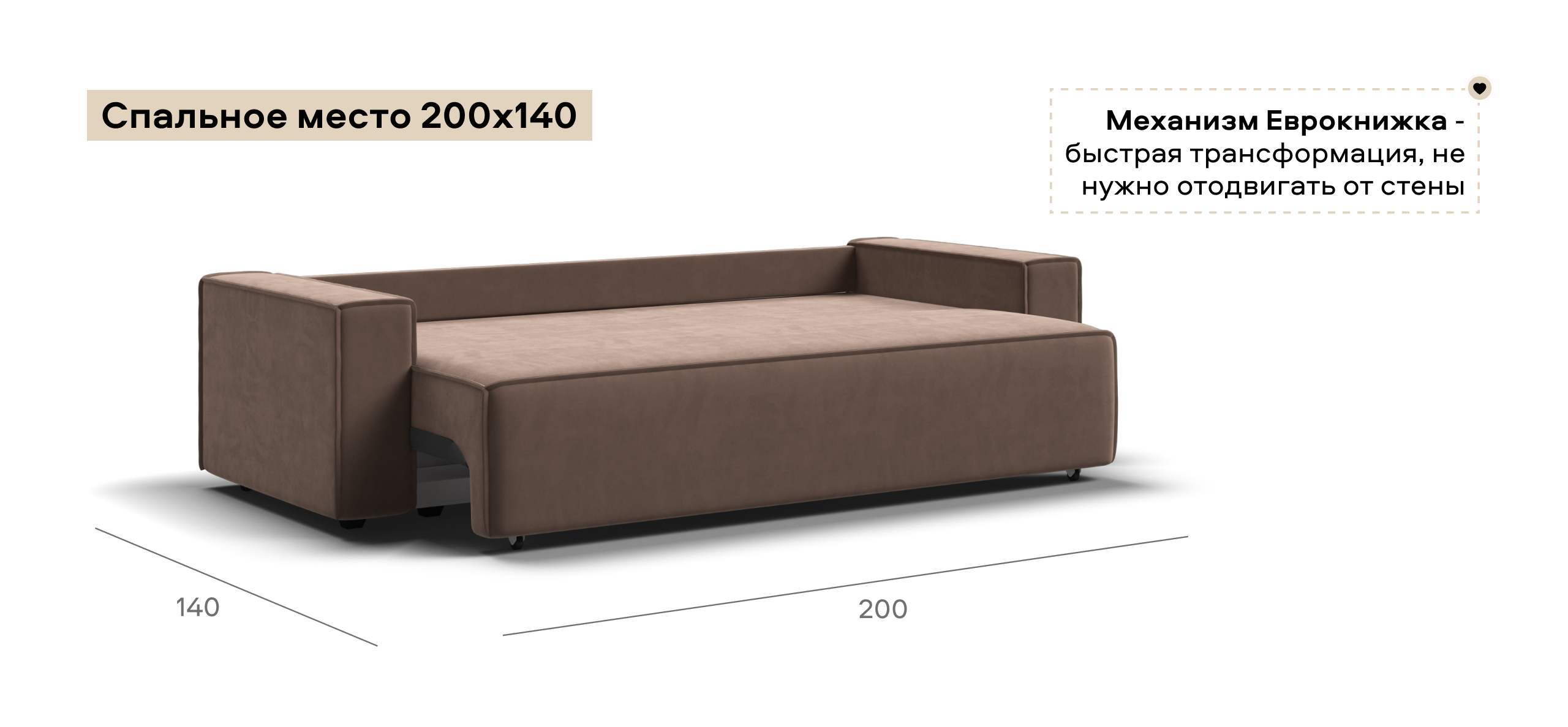 Днем вы с комфортом сможете провести время за просмотром любимого фильма, а ночью трансформировать диван в идеально ровное спальное место без стыков, благодаря анатомическому матрасу и надежному механизму еврокнижка.