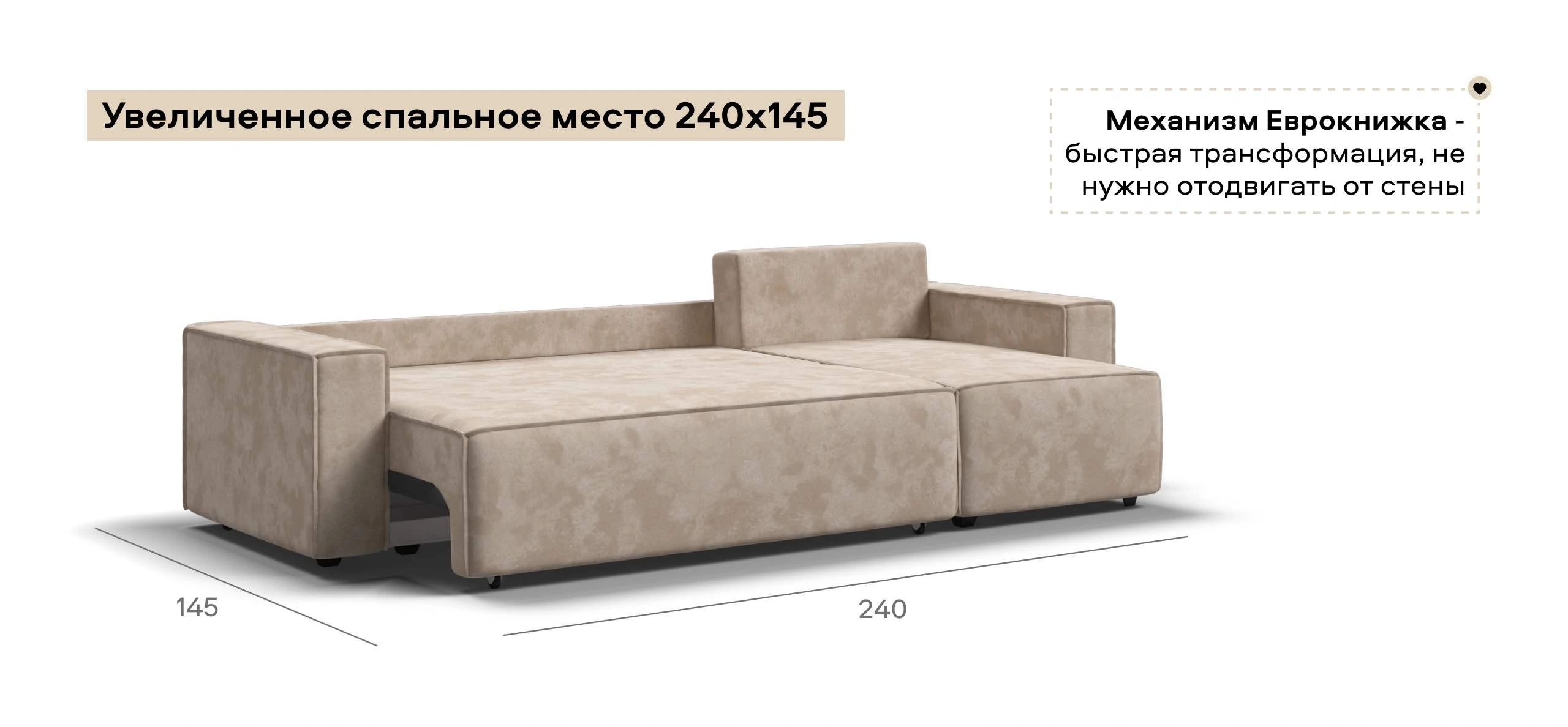 Угловой диван Норд с мягкими широкими подлокотниками, строгой симметрией и минималистичной отделкой идеально дополнит современный интерьер в стиле лофт. Днем Вы с комфортом сможете провести время за просмотром любимого фильма, а ночью трансформировать диван в полноценное спальное место, благодаря анатомическому матрасу и надежному механизму еврокнижка. Диван имеет дизайн 360, что позволит расположить его в любой части гостиной. Универсальный угол позволит Вам самостоятельно определить положение угла при сборке.