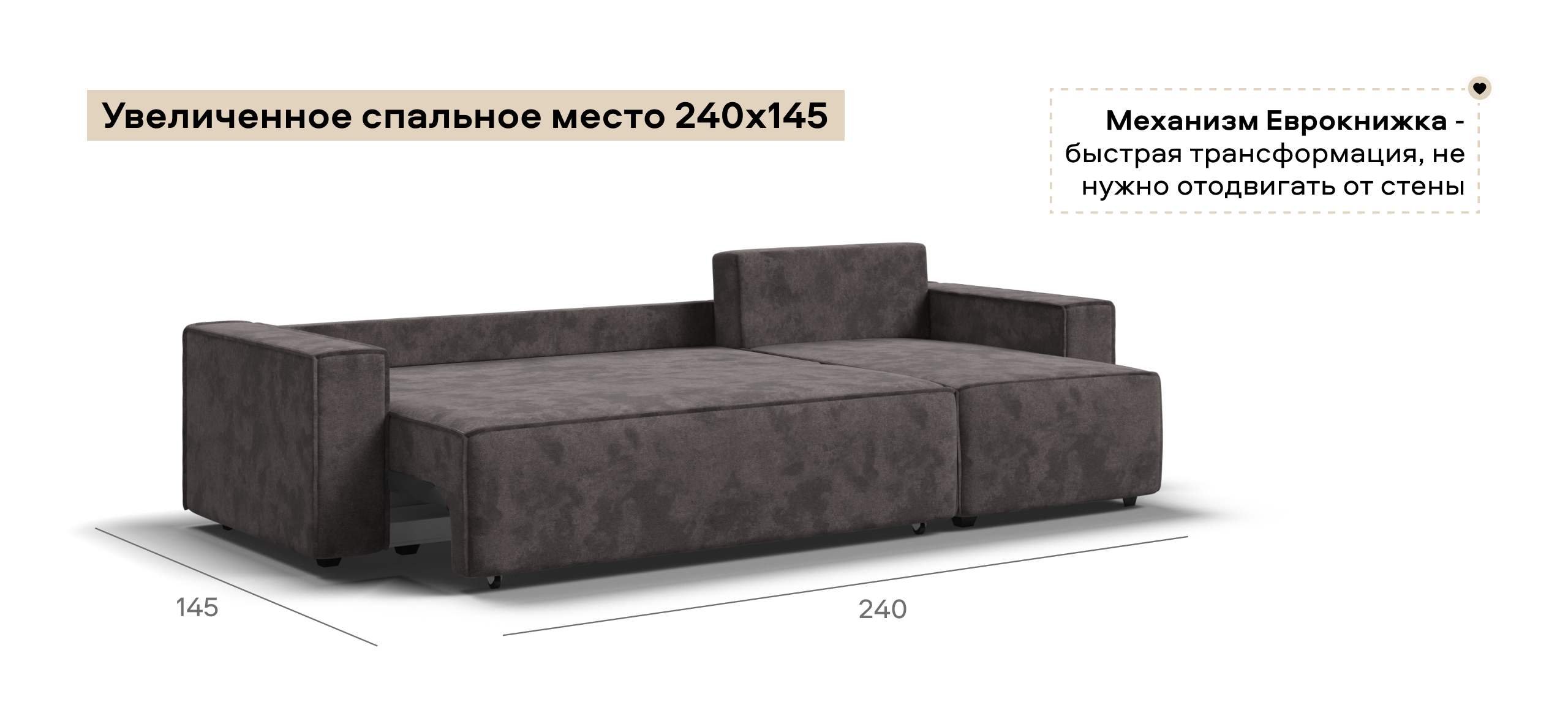 Угловой диван Норд с мягкими широкими подлокотниками, строгой симметрией и минималистичной отделкой идеально дополнит современный интерьер в стиле лофт. Днем Вы с комфортом сможете провести время за просмотром любимого фильма, а ночью трансформировать диван в полноценное спальное место, благодаря анатомическому матрасу и надежному механизму еврокнижка. Диван имеет дизайн 360, что позволит расположить его в любой части гостиной. Универсальный угол позволит Вам самостоятельно определить положение угла при сборке.