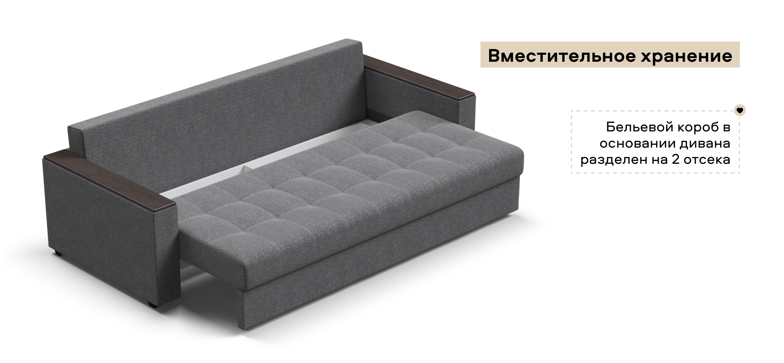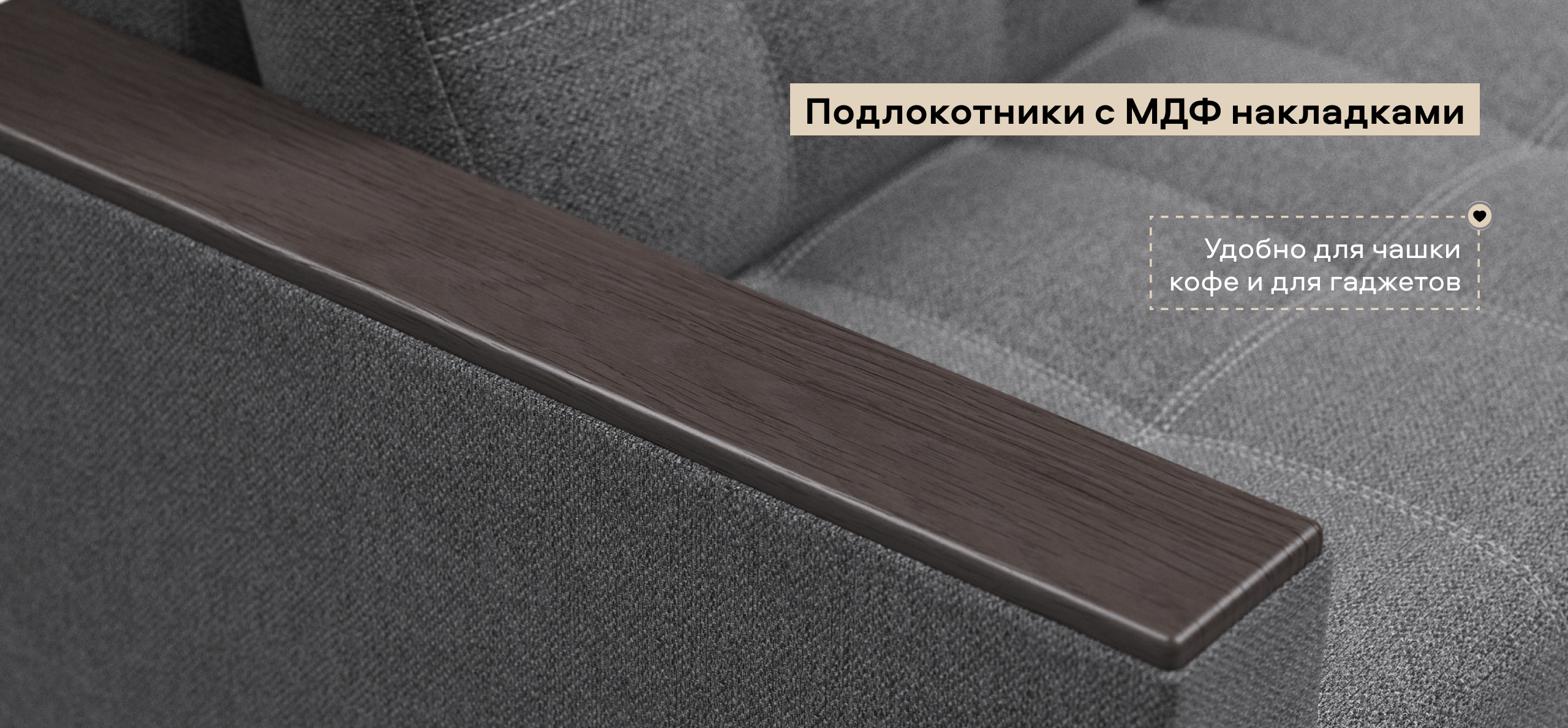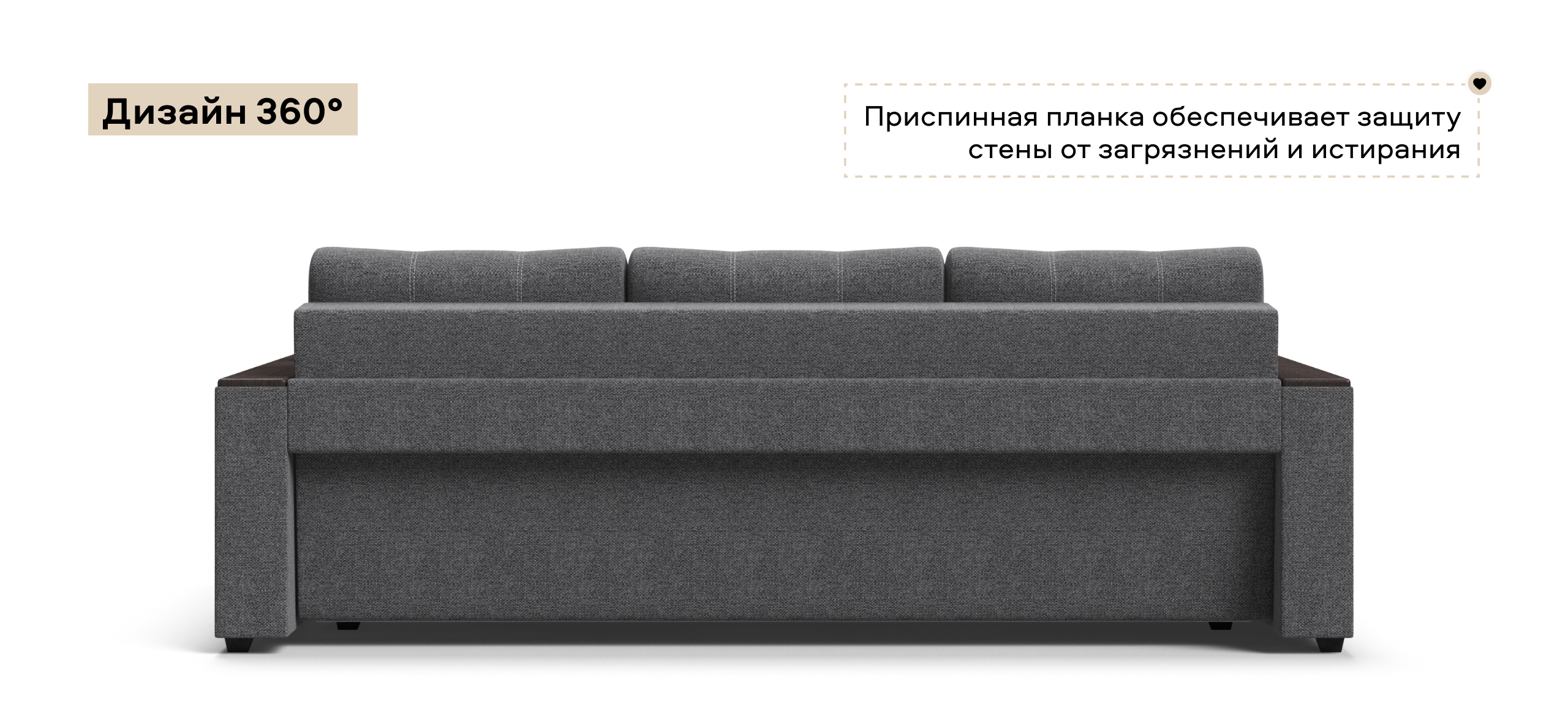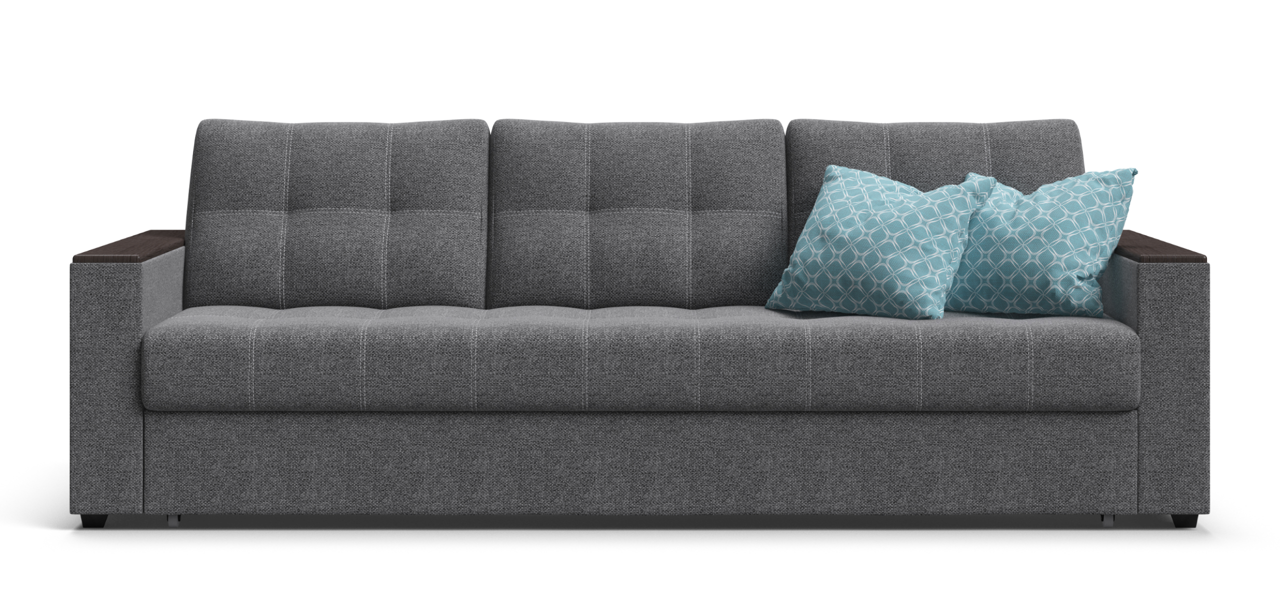 Диван имеет удобные подлокотники из МДФ, которые можно использовать в качестве столика. Элегантная прострочка на посадочной части украшает внешний вид дивана и дает возможность сохранить обивку от растяжения.