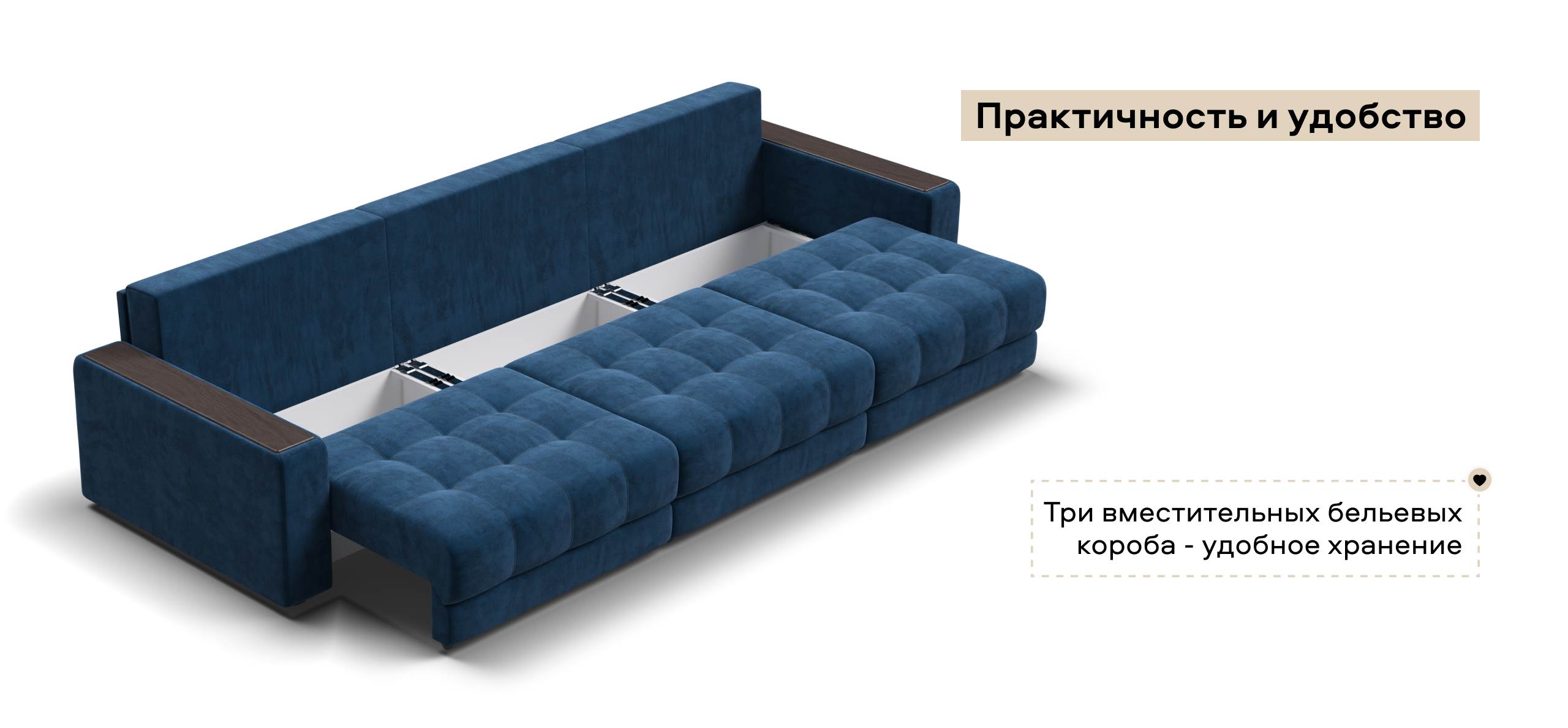 Диван Босс Гранд - большой, стильный и комфортный диван, предназначенный для просторной комнаты. Продуманный до мелочей диван Босс сочетает в себе надежный каркас, мягкие ткани, многофункциональность и быструю сборку за 1 минуту без инструментов - ощутите комфорт у себя дома!