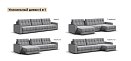 Каждое посадочное место выдвигается вперед и можно получить диван с правым или левым углом, а также получить П-образную форму дивана.