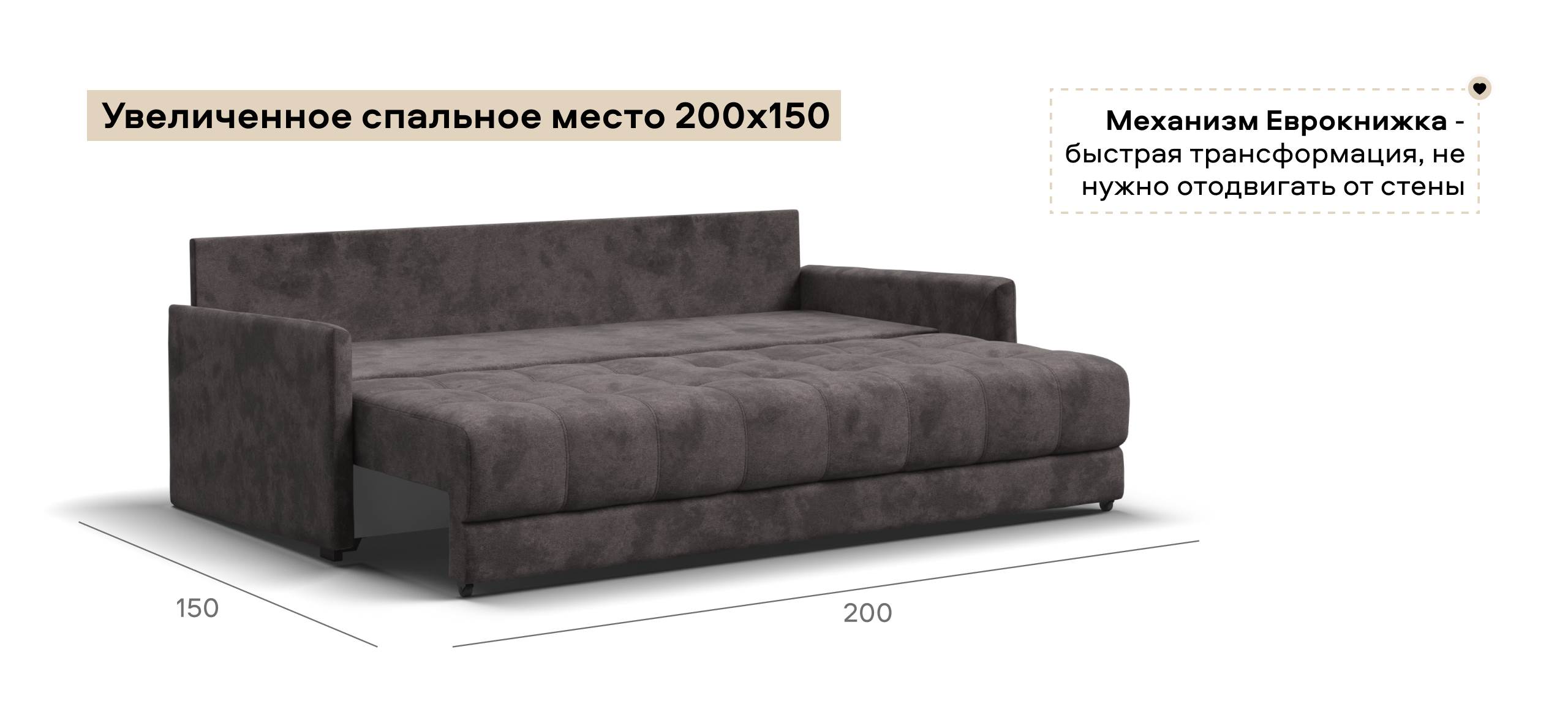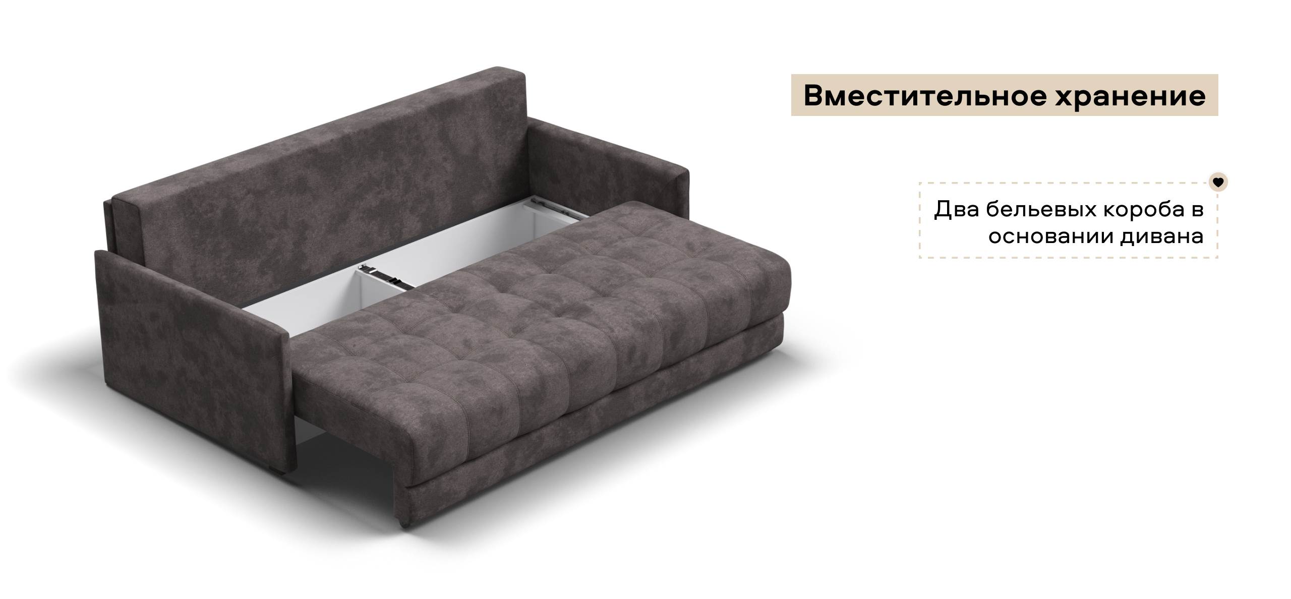 Легкая трансформация в три положения создаст для Вас максимально комфортный отдых, а улучшенное анатомическое основание в диване обеспечит Вам здоровый сон.