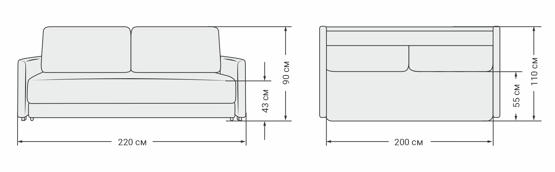 220x110x90 см