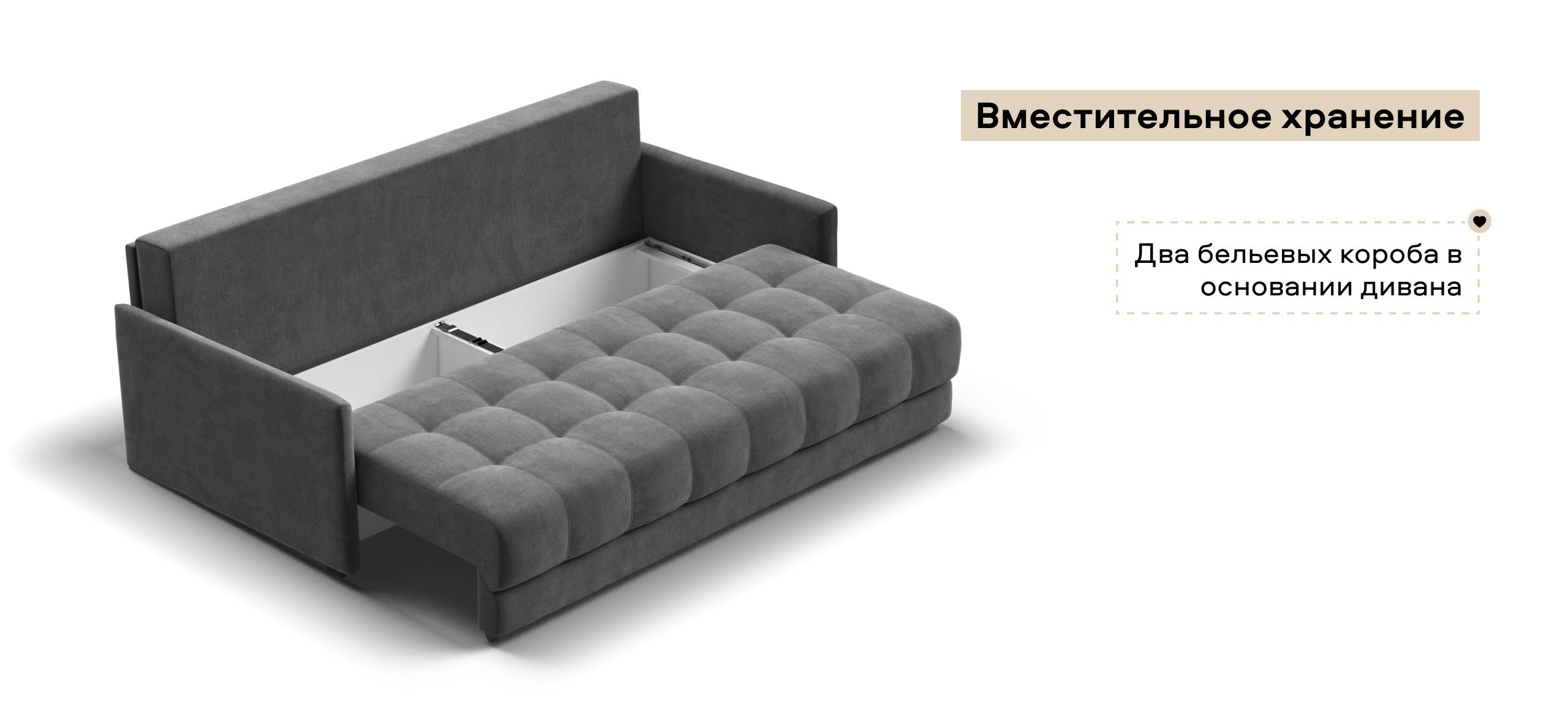 Легкая трансформация в три положения создаст для Вас максимально комфортный отдых, а улучшенное анатомическое основание в диване обеспечит Вам здоровый сон.