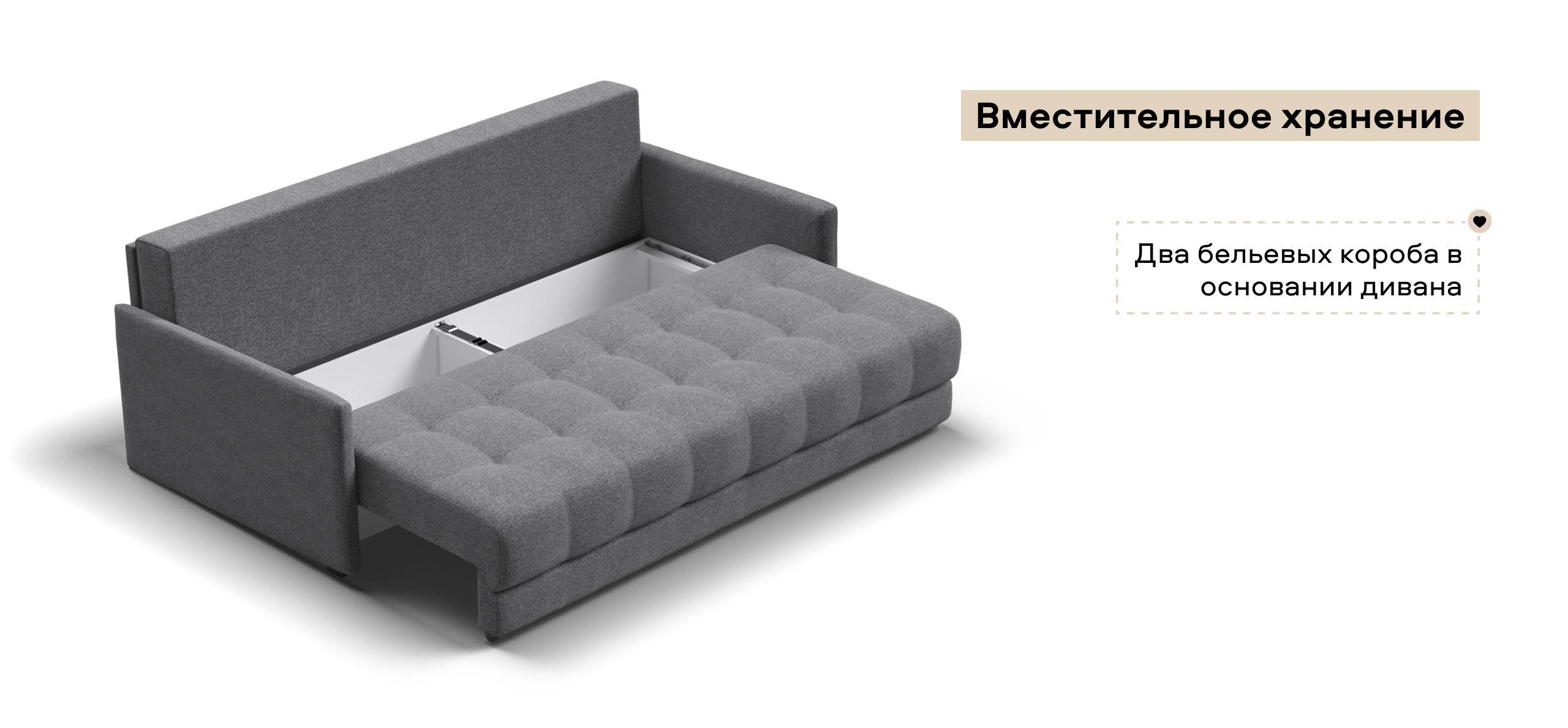 Легкая трансформация в три положения создаст для Вас максимально комфортный отдых, а улучшенное анатомическое основание в диване обеспечит Вам здоровый сон.