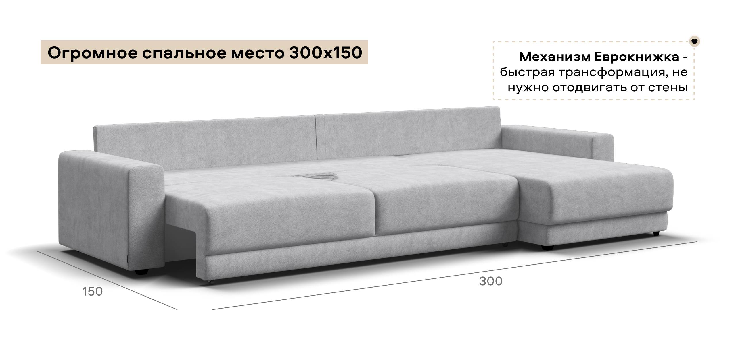 Простой и надежный механизм еврокнижка позволяет ставить диван вплотную к стене