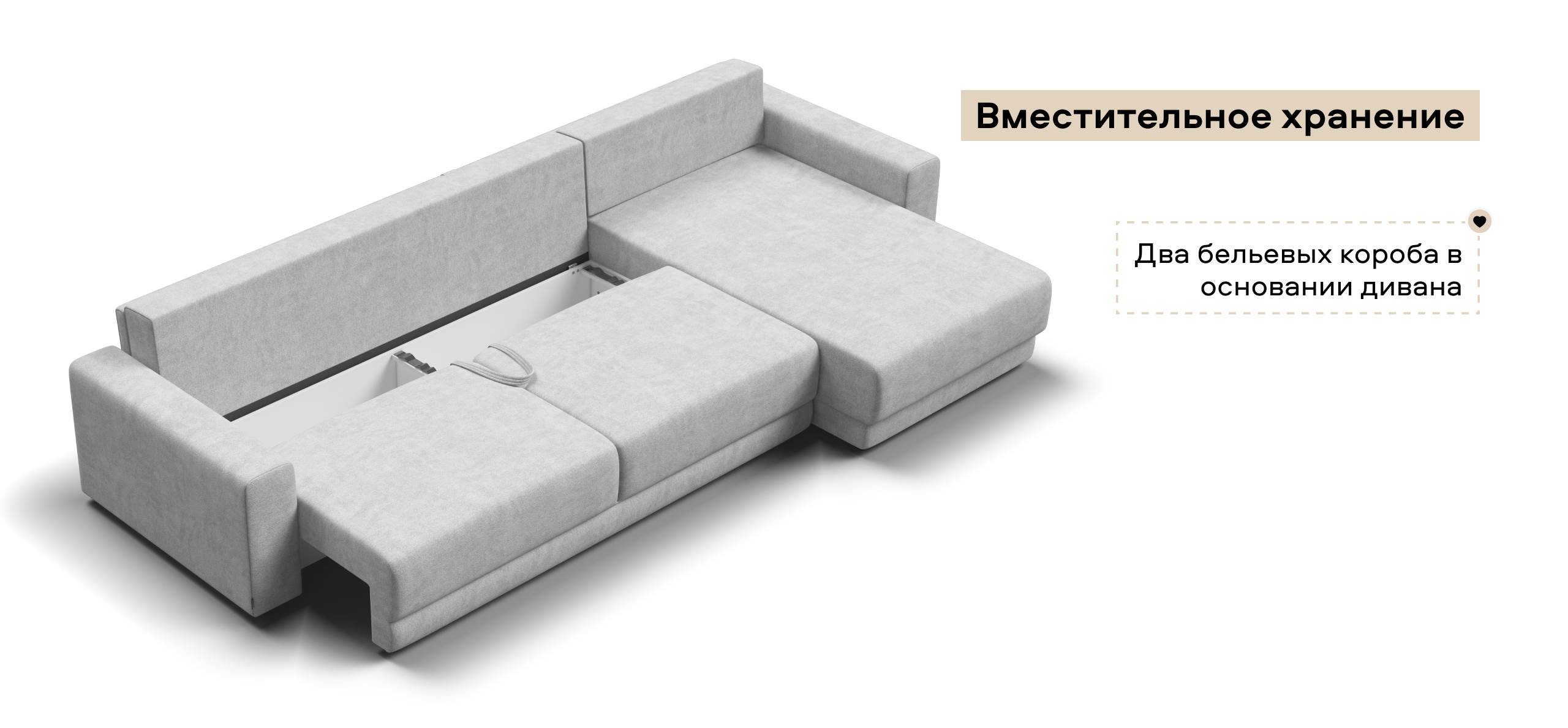 Бельевой короб на 240 л под посадочной частью - удобное и безопасное хранение постельного белья