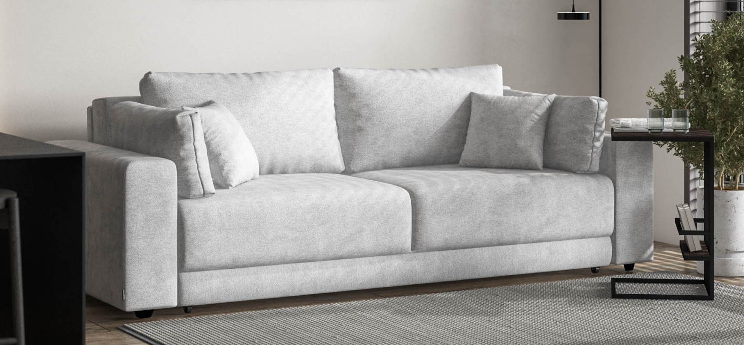 Оснащённый независимым пружинным блоком и высокоэластичной пеной Эластик Фоам с дополнительным слоем периотека, диван гарантирует анатомическую поддержку и комфортный сон. Простой и надёжный механизм трансформации «еврокнижка» позволяет легко преобразовать диван в просторное спальное место.