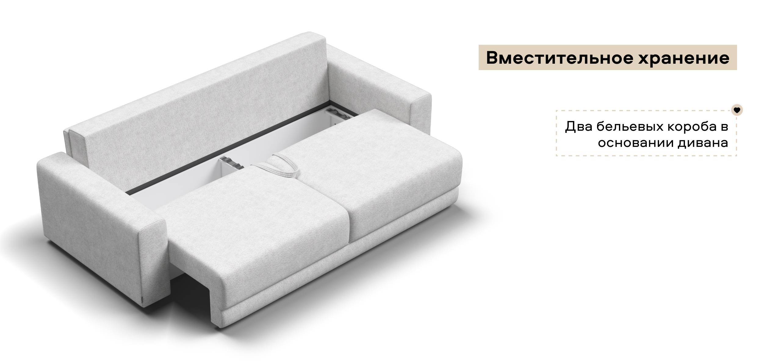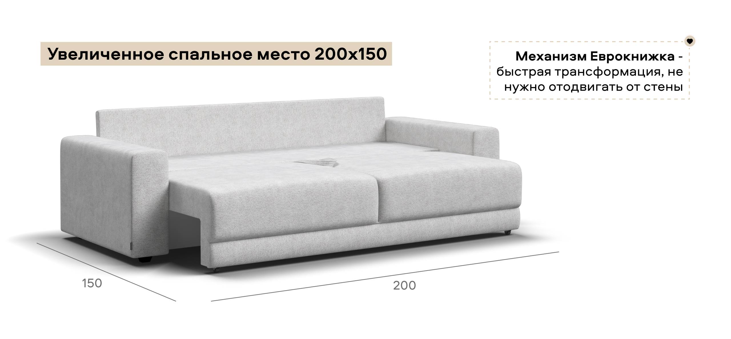 Оснащённый независимым пружинным блоком и высокоэластичной пеной Эластик Фоам с дополнительным слоем периотека, диван гарантирует анатомическую поддержку и комфортный сон. Простой и надёжный механизм трансформации «еврокнижка» позволяет легко преобразовать диван в просторное спальное место.