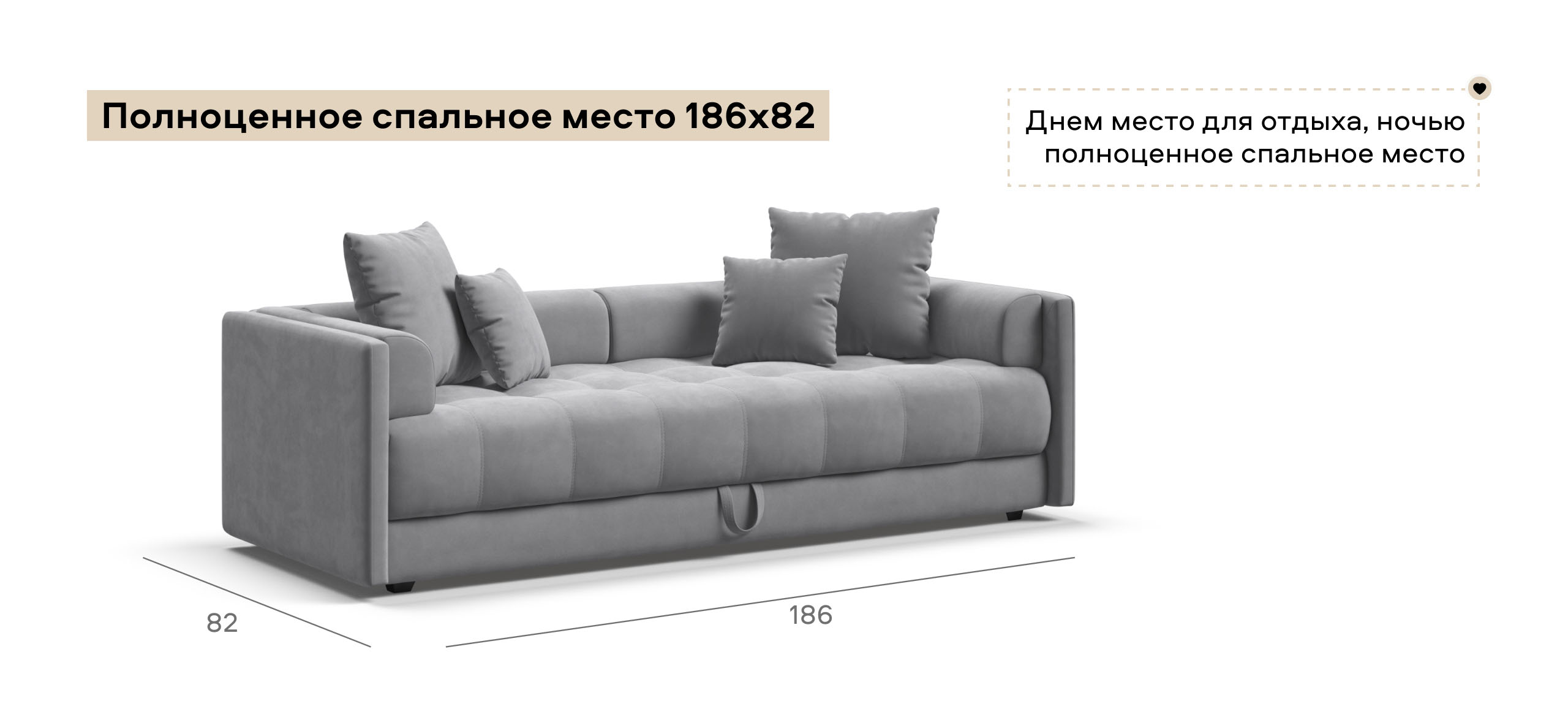 Тахта отлично сочетает в себе две функции: днем – уютное место для отдыха и работы в качестве дивана, а ночью полноценное спальное место. Формованные подушки-спинки помогут расслабиться во время отдыха, поддерживая голову в комфортном положении.