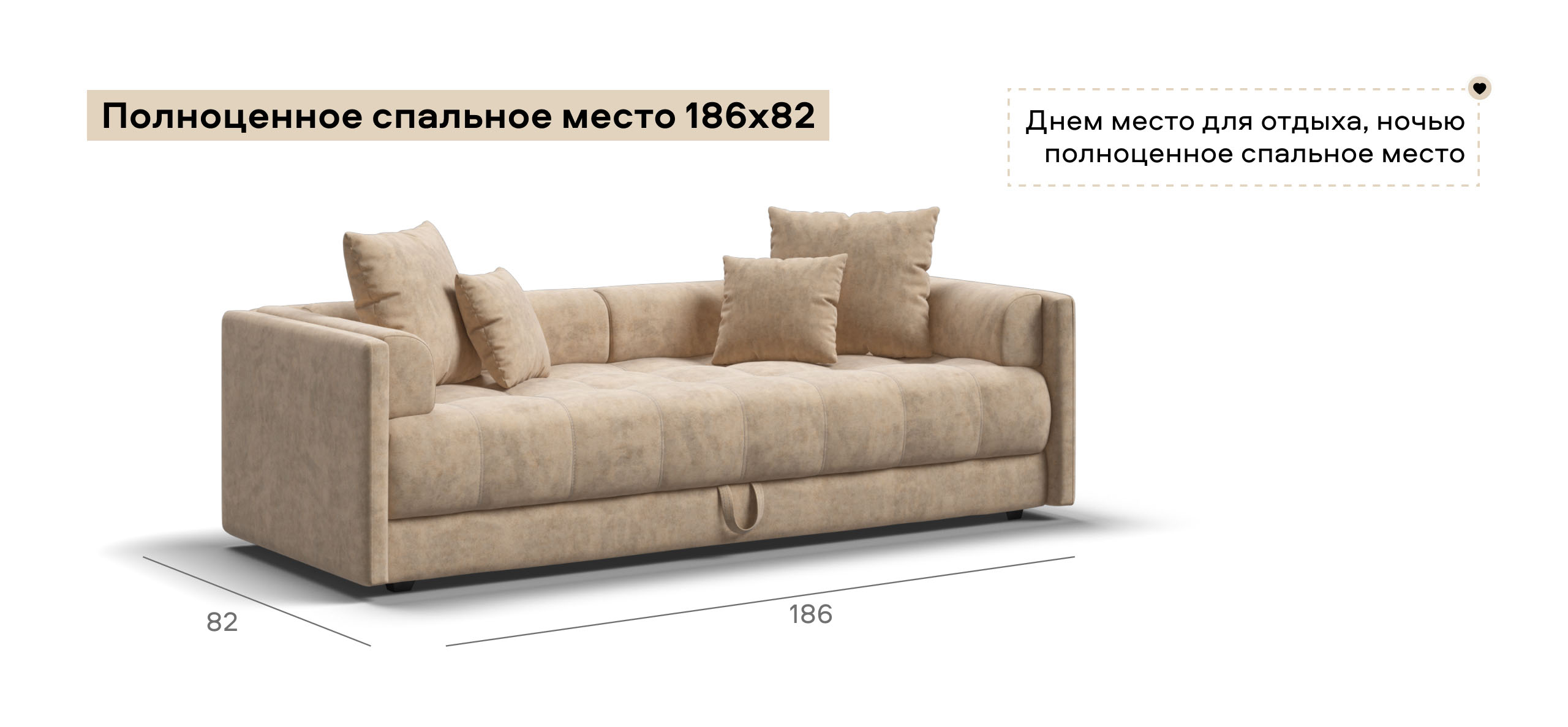 Тахта отлично сочетает в себе две функции: днем – уютное место для отдыха и работы в качестве дивана, а ночью полноценное спальное место. Формованные подушки-спинки помогут расслабиться во время отдыха, поддерживая голову в комфортном положении.