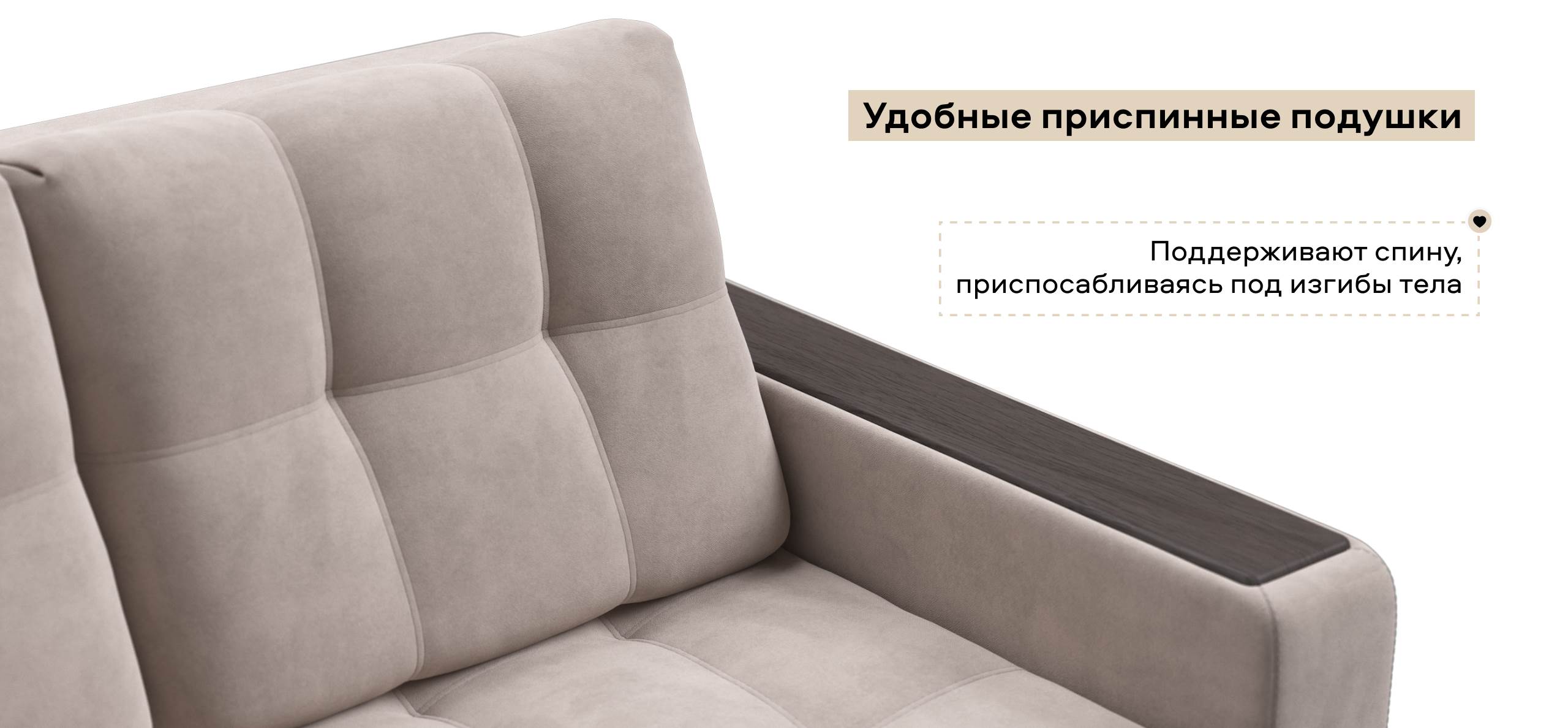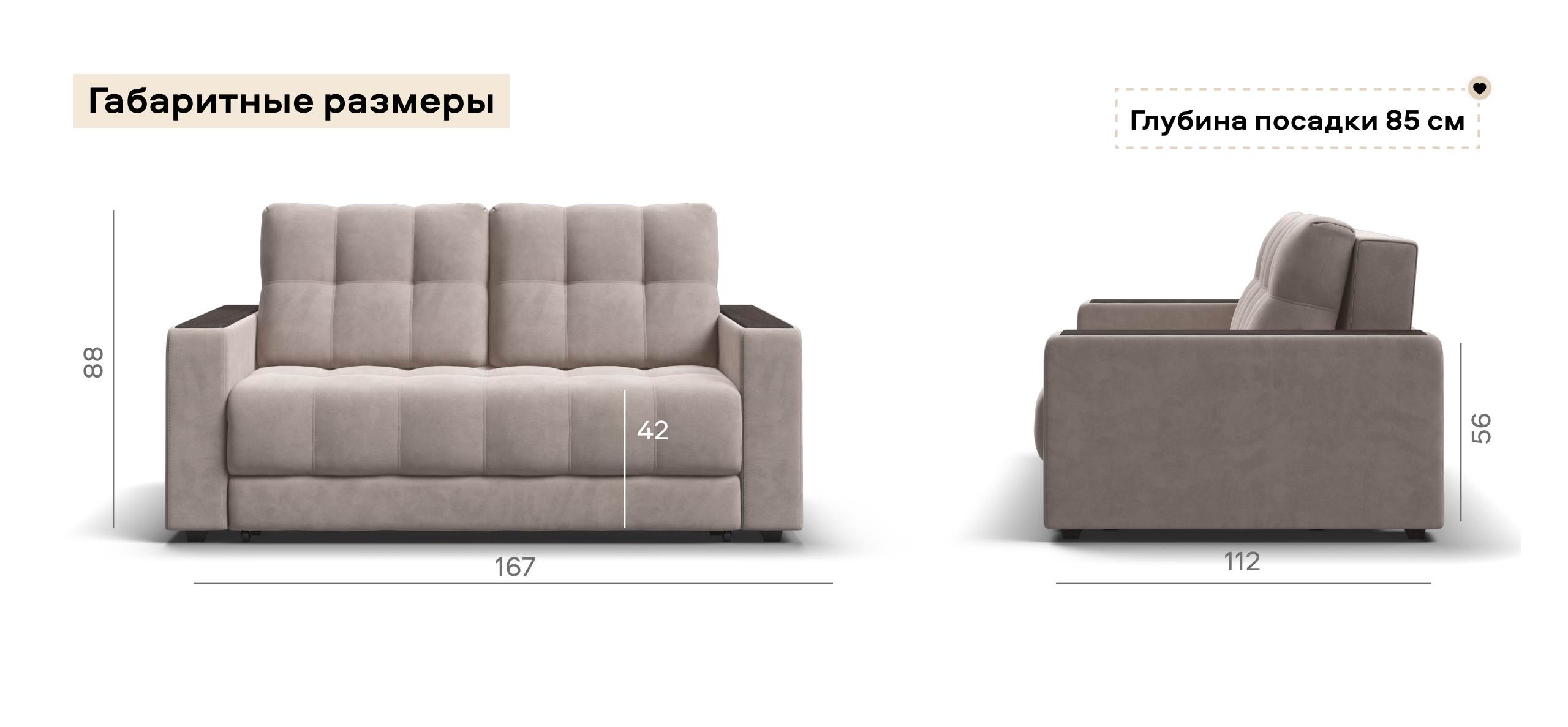 Диван компактный, но на двух человек места достаточно. Ткань чистится без проблем обычной щеткой.