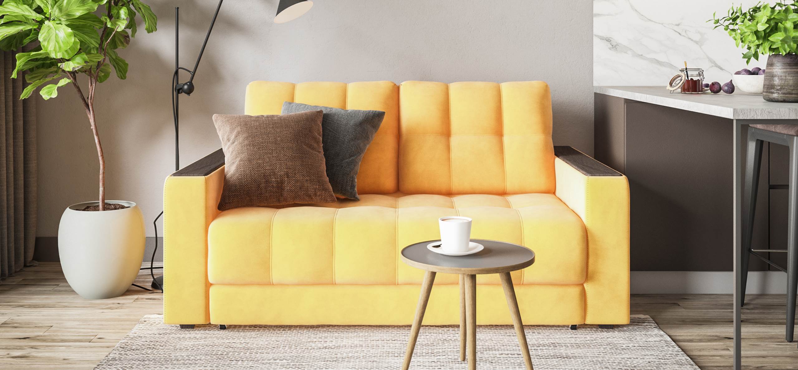 Диван компактный, но на двух человек места достаточно. Ткань чистится без проблем обычной щеткой.
