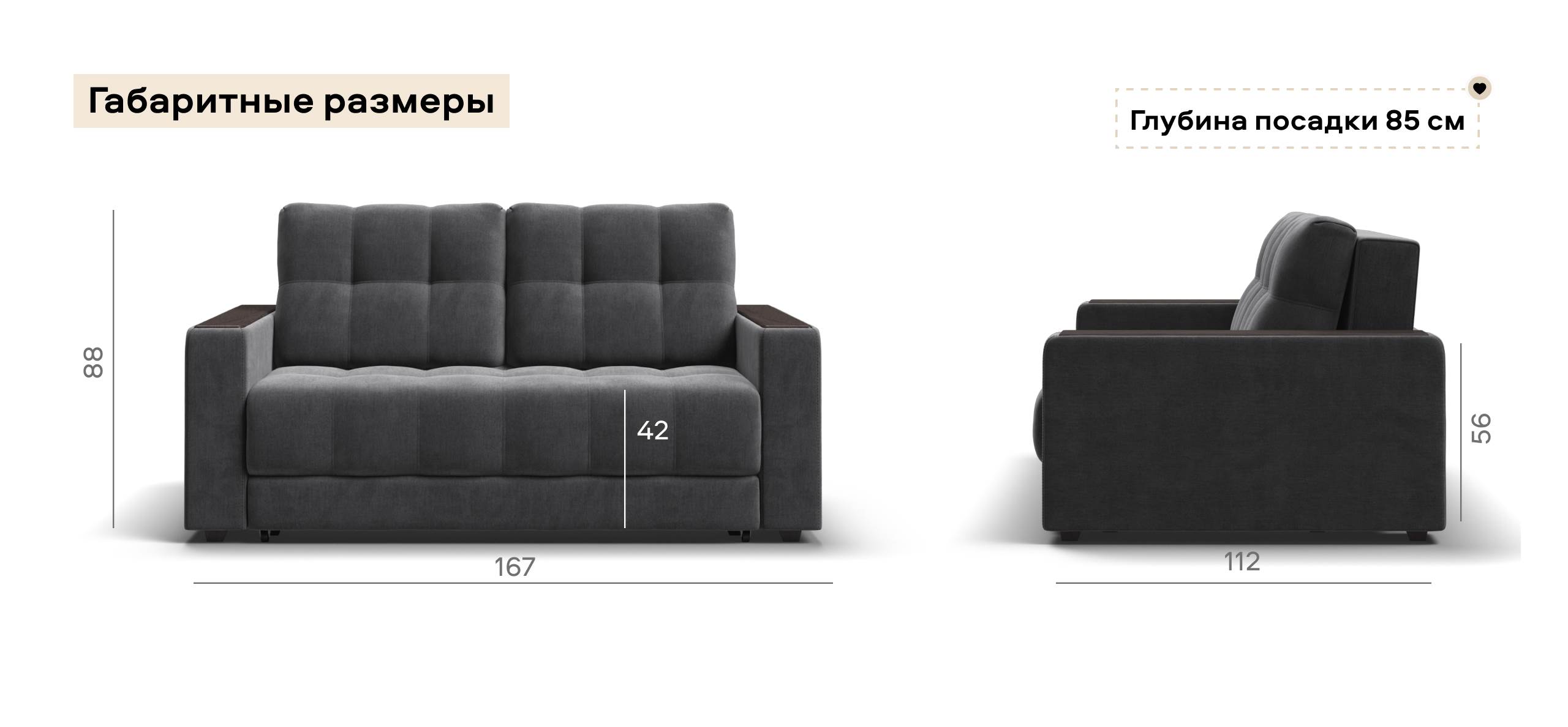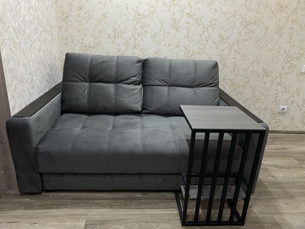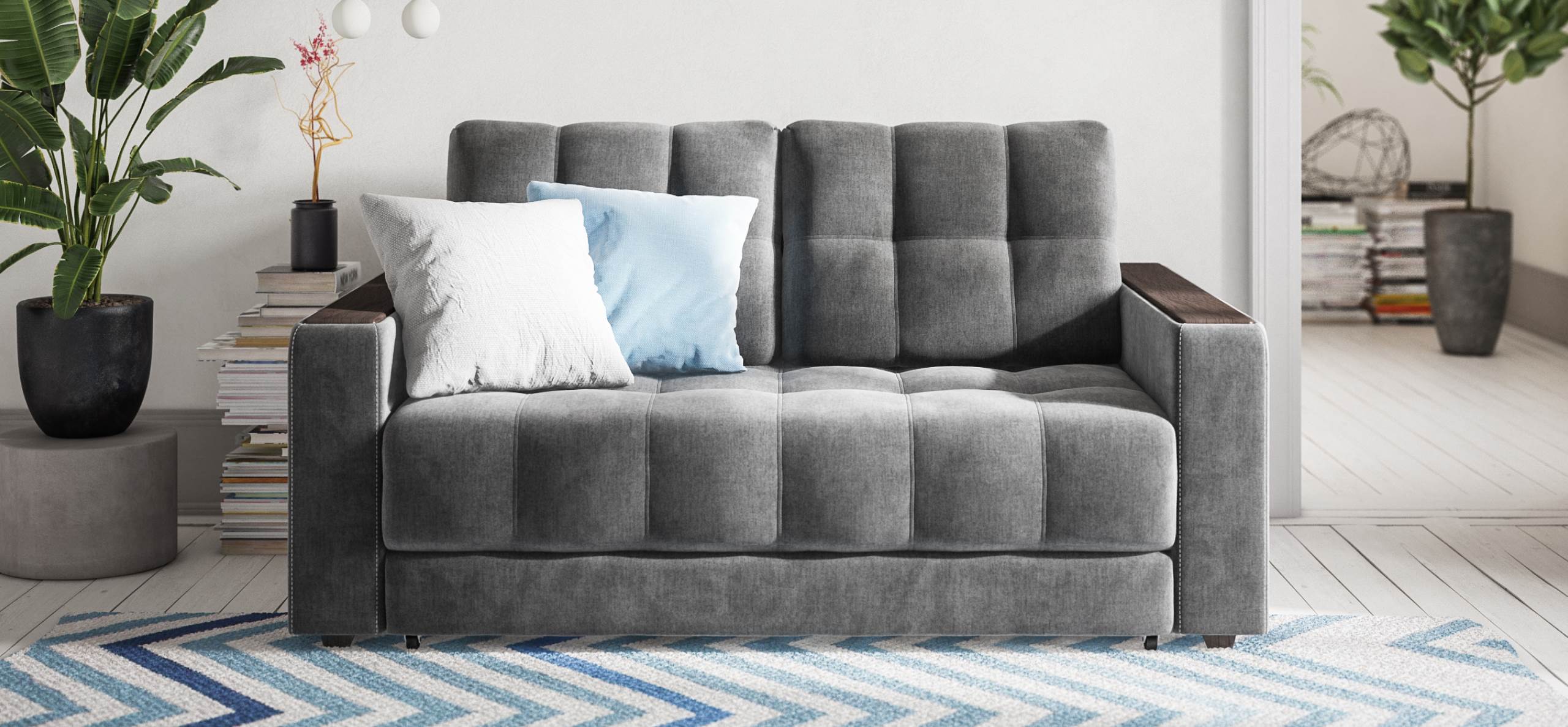 Диван компактный, но на двух человек места достаточно. Ткань чистится без проблем обычной щеткой.