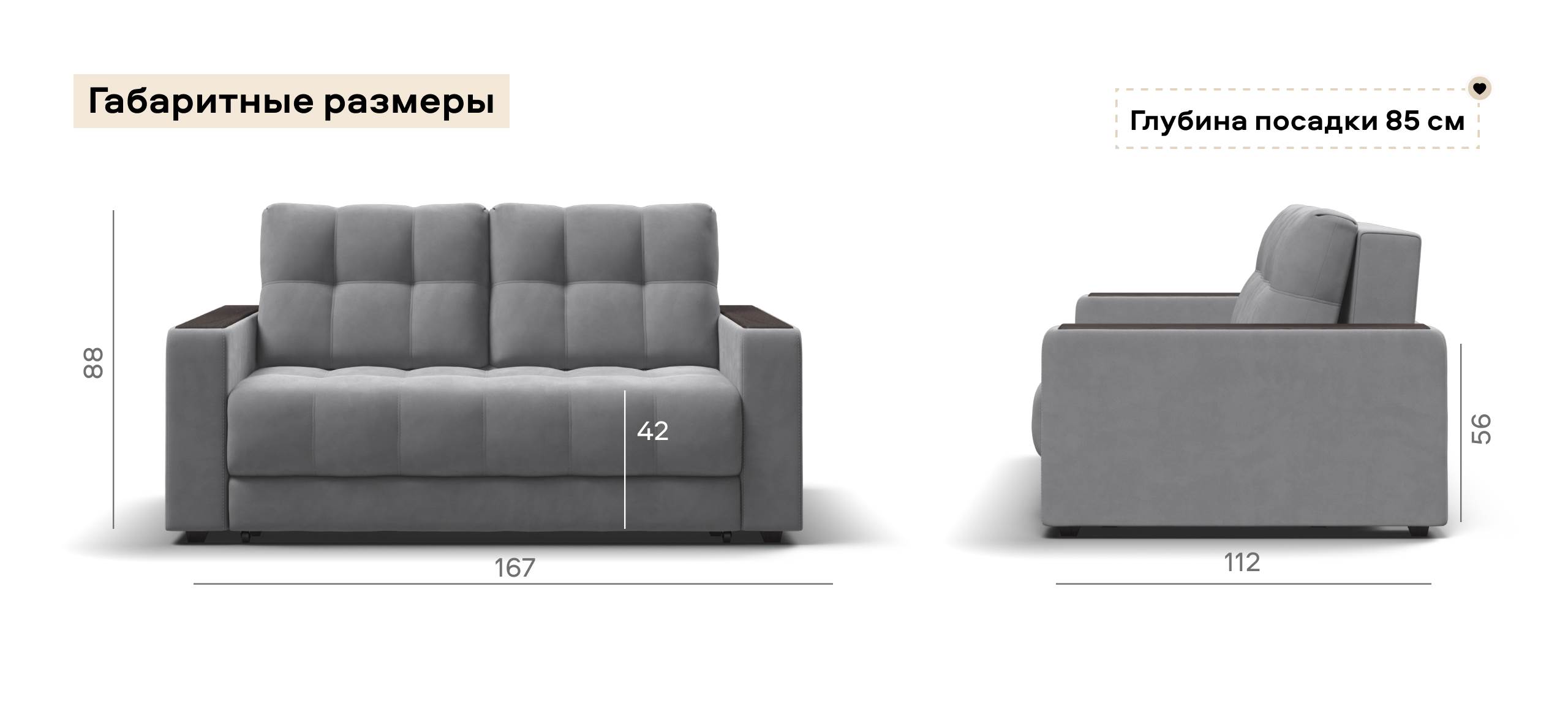 Диван Босс двухместный велюр Монолит сталь