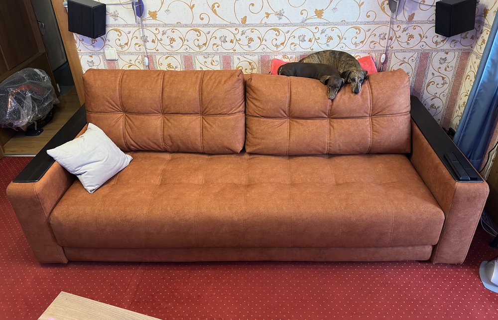 Легкая трансформация в три положения создаст для Вас максимально комфортный отдых, а улучшенное анатомическое основание в диване обеспечит Вам здоровый сон. Спинка защищает от соприкосновения со стеной во время сна.
