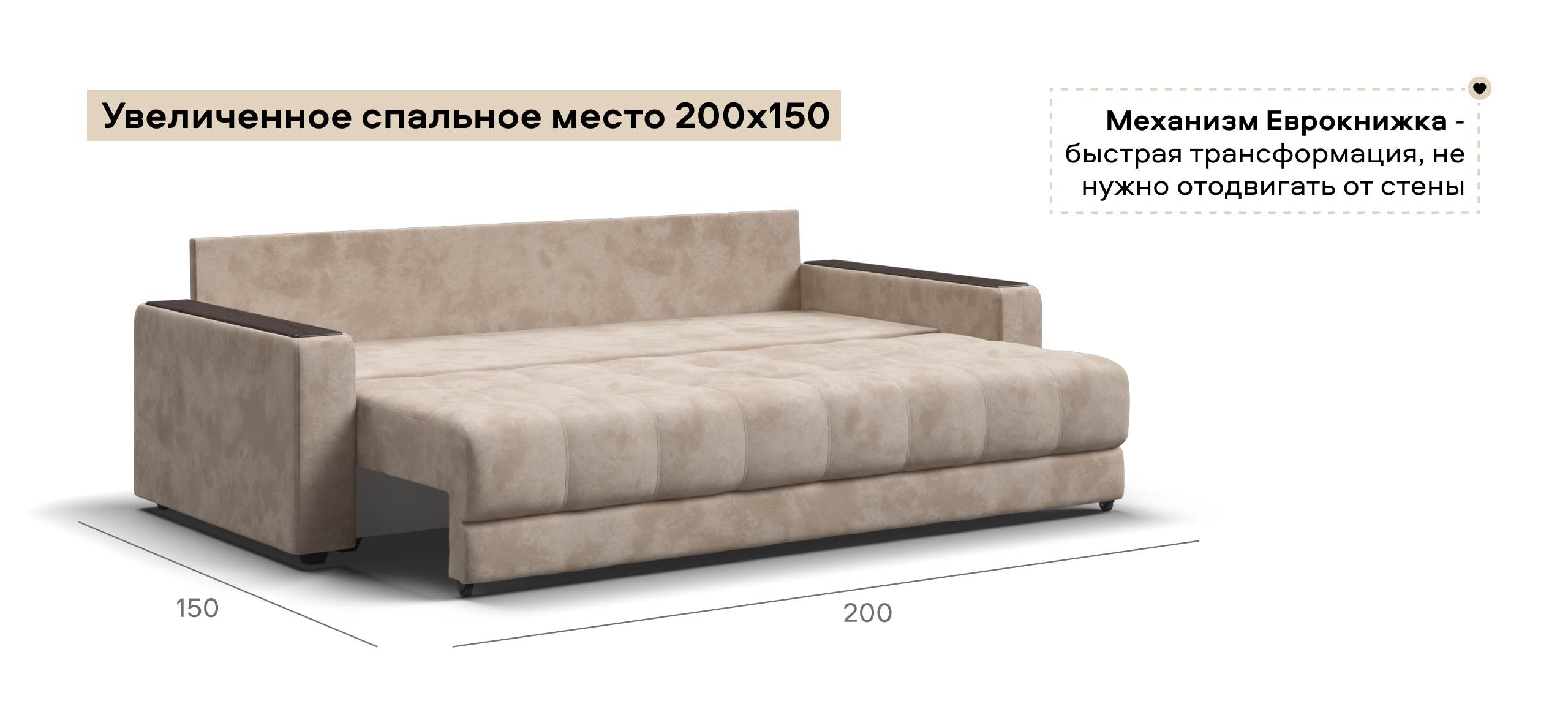 Легкая трансформация в три положения создаст для Вас максимально комфортный отдых, а улучшенное анатомическое основание в диване обеспечит Вам здоровый сон. Спинка защищает от соприкосновения со стеной во время сна.