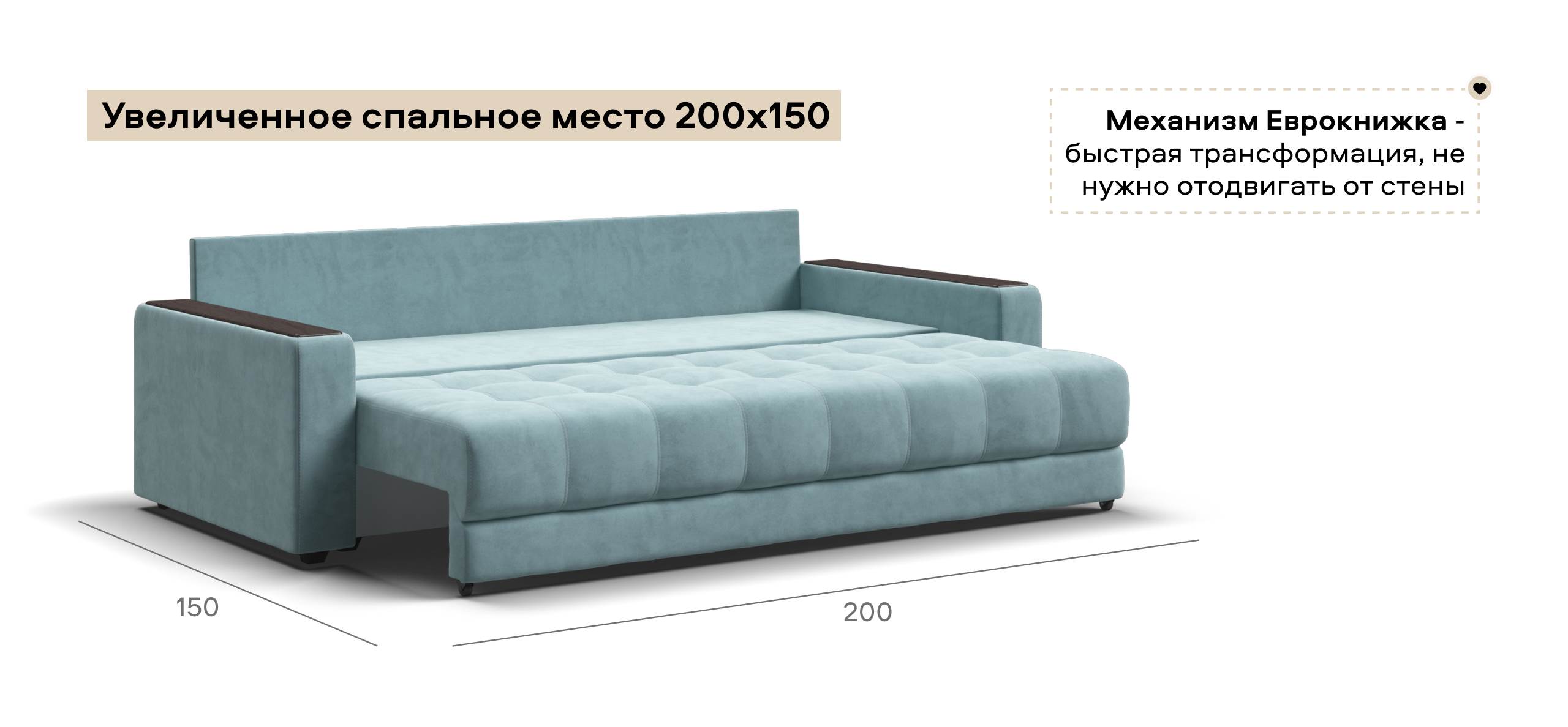 Легкая трансформация в три положения создаст для Вас максимально комфортный отдых, а улучшенное анатомическое основание в диване обеспечит Вам здоровый сон. Спинка защищает от соприкосновения со стеной во время сна.