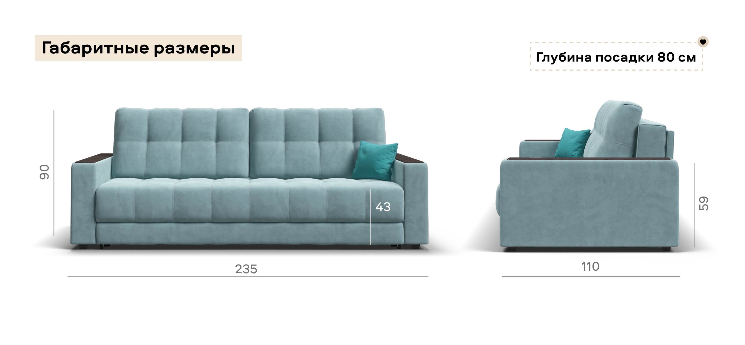 Диван Босс велюр Монолит аква
